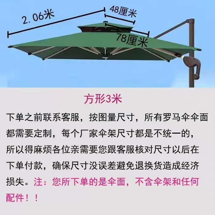 • 맞춤형 이중 상단 짙은 녹색 3m 정사각형 로마 우산 천(고객 서비스에 문의)