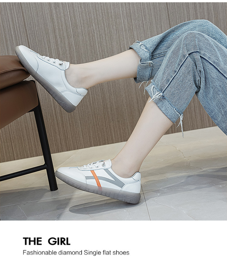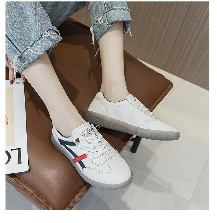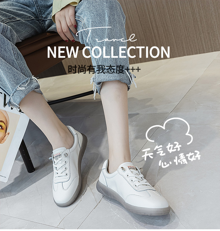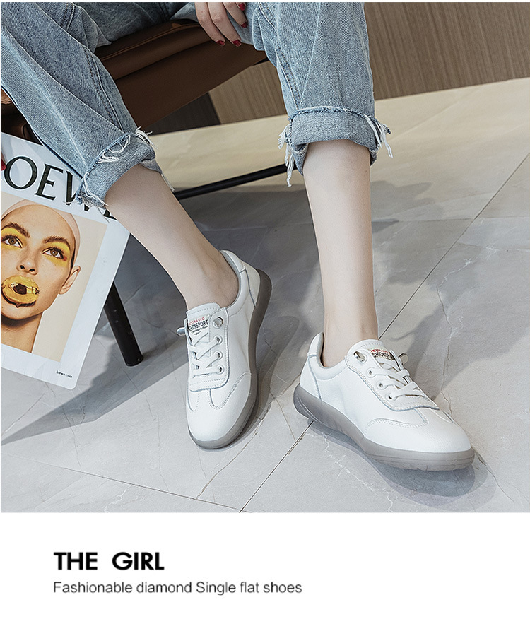 흰색 신발 여성 가을 2023 새로운 정품 가죽 쇠고기 밑창 신발 올매치 한국 캐주얼 신발 부드러운 밑창 미끄럼 방지 싱글 레이어 신발스토어 가기
