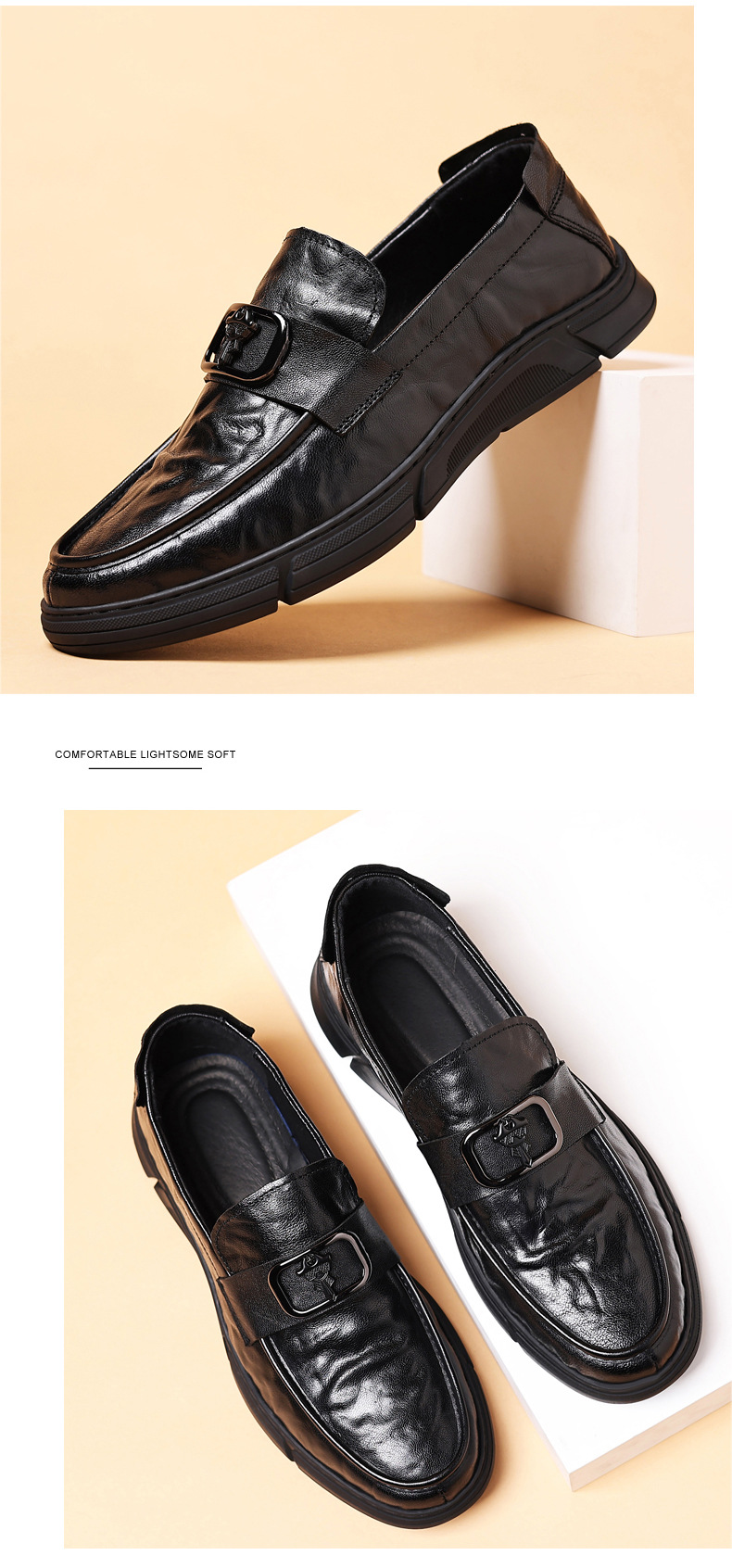 봄 신상품 1층 양가죽 남성 가죽 신발, 천연 가죽 남성 캐주얼 신발, 통기성 비니 신발, 남성 신발, 싱글 신발스토어 가기