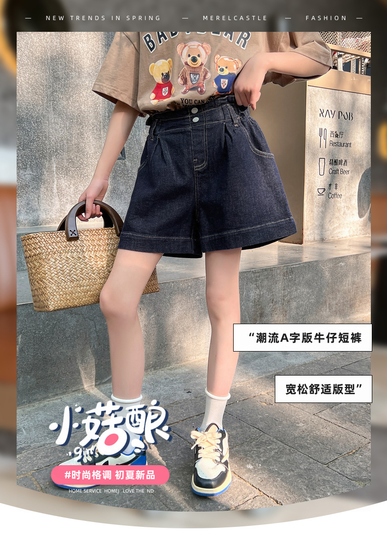 어린이 2024 한국 스타일 서양식 여름 얇은 청바지 빅 키즈 소녀 외신 반바지 소녀 패션 핫 바지