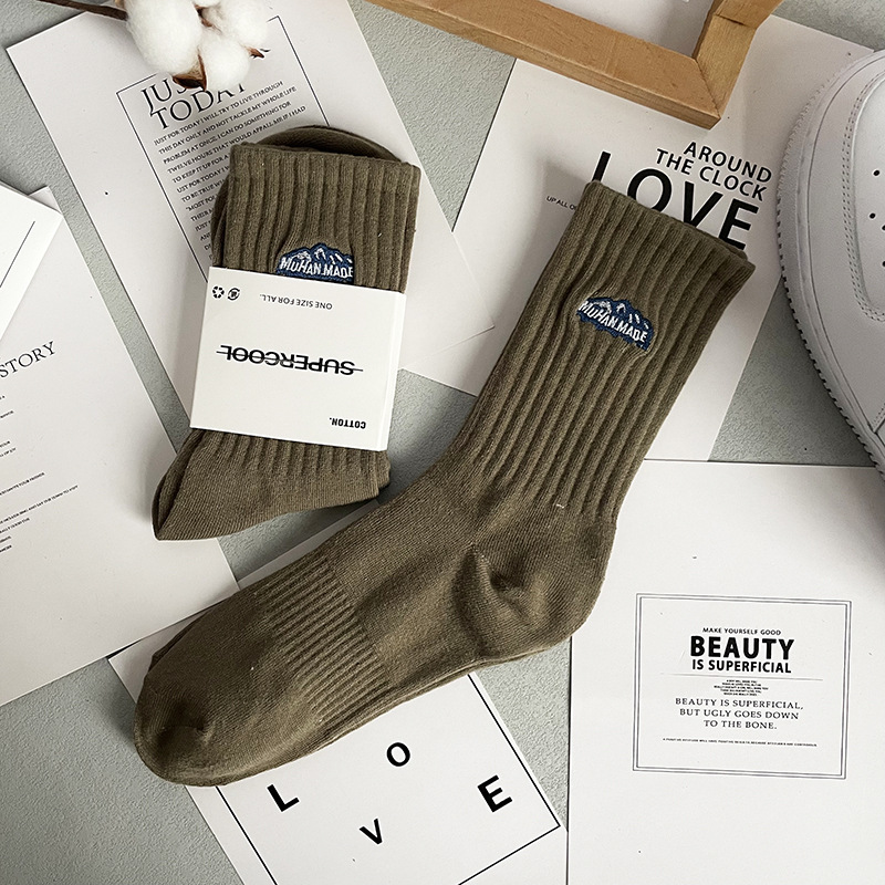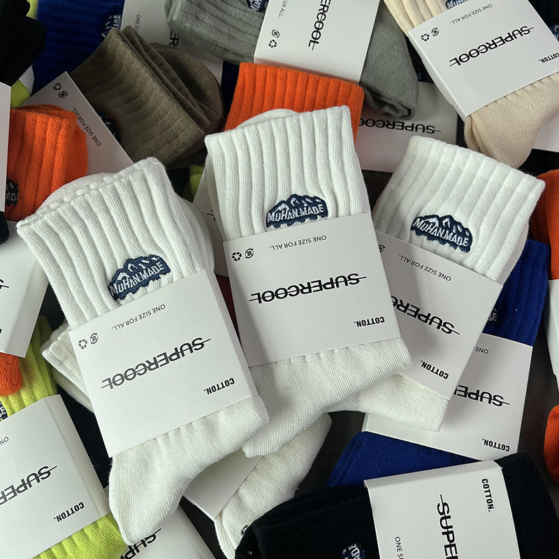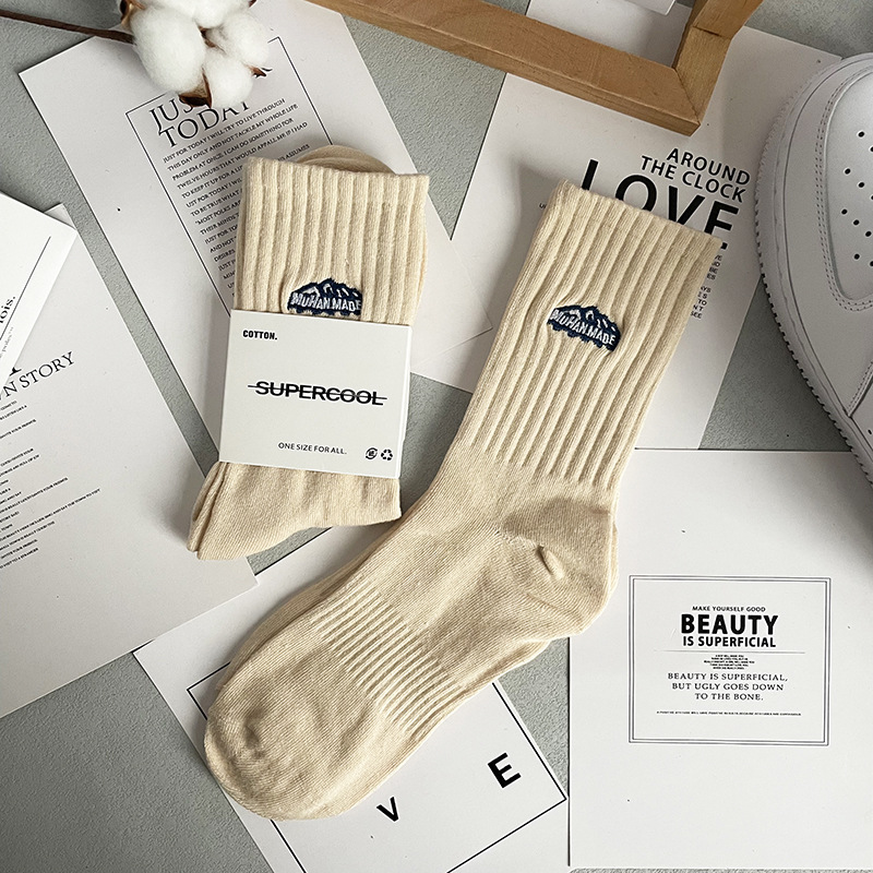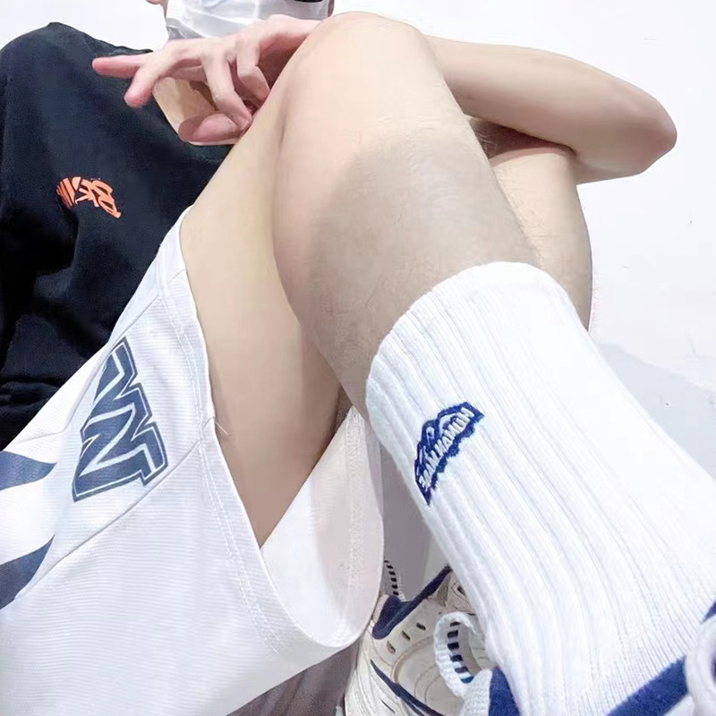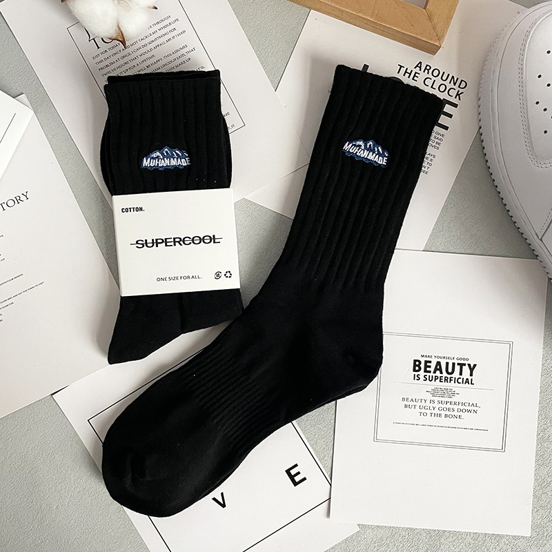 바늘 1 개 이중 실 스노우 마운틴 자수 면 양말 Yu Wen Le Chao in 남녀 스포츠 농구 스타킹 도매