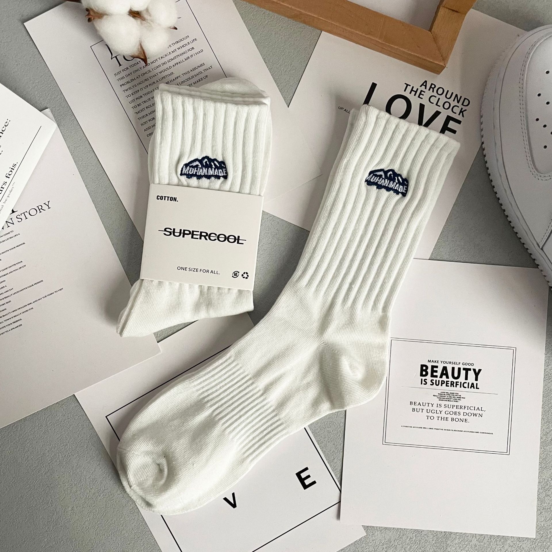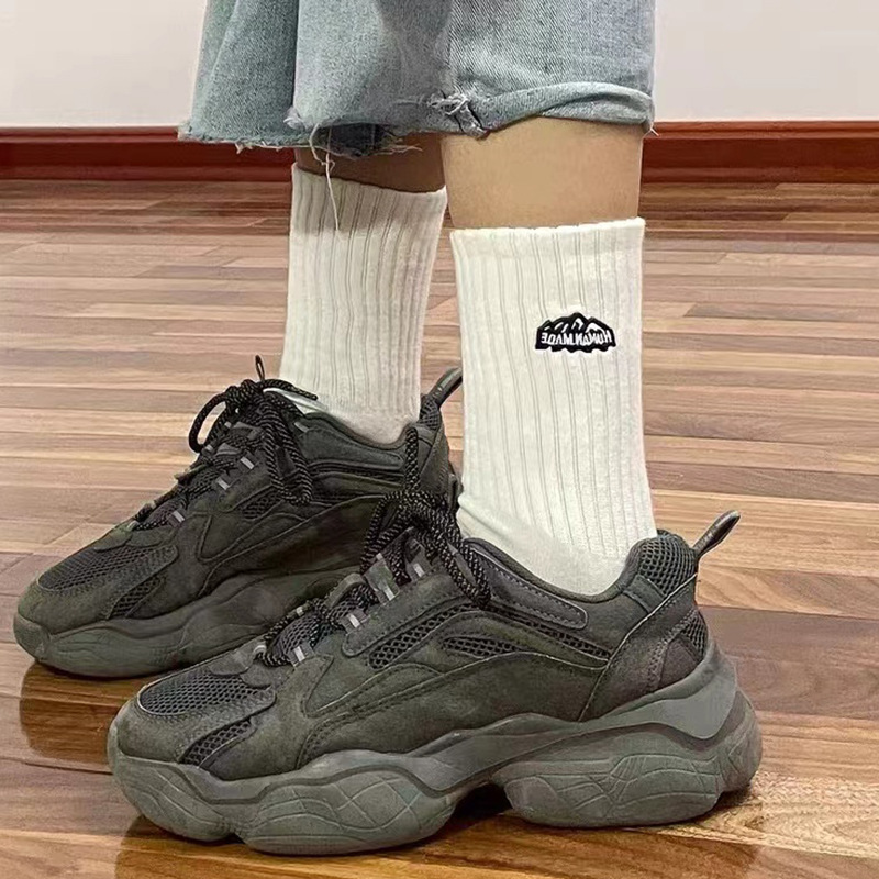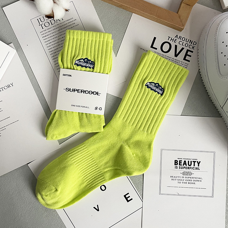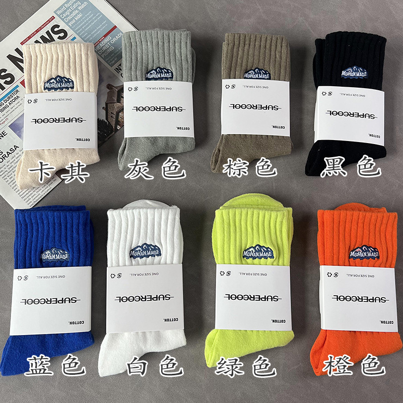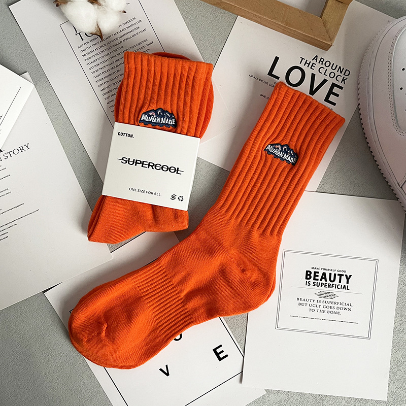 바늘 1 개 이중 실 스노우 마운틴 자수 면 양말 Yu Wen Le Chao in 남녀 스포츠 농구 스타킹 도매