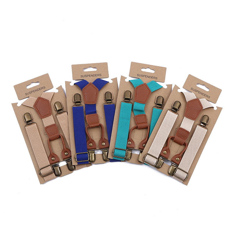 새로운 어린이 청동 버클 4 클립 백 바지 벨트 멀티 컬러 하이 퀄리티 탄성 어린이 스트랩 자카드 멜빵