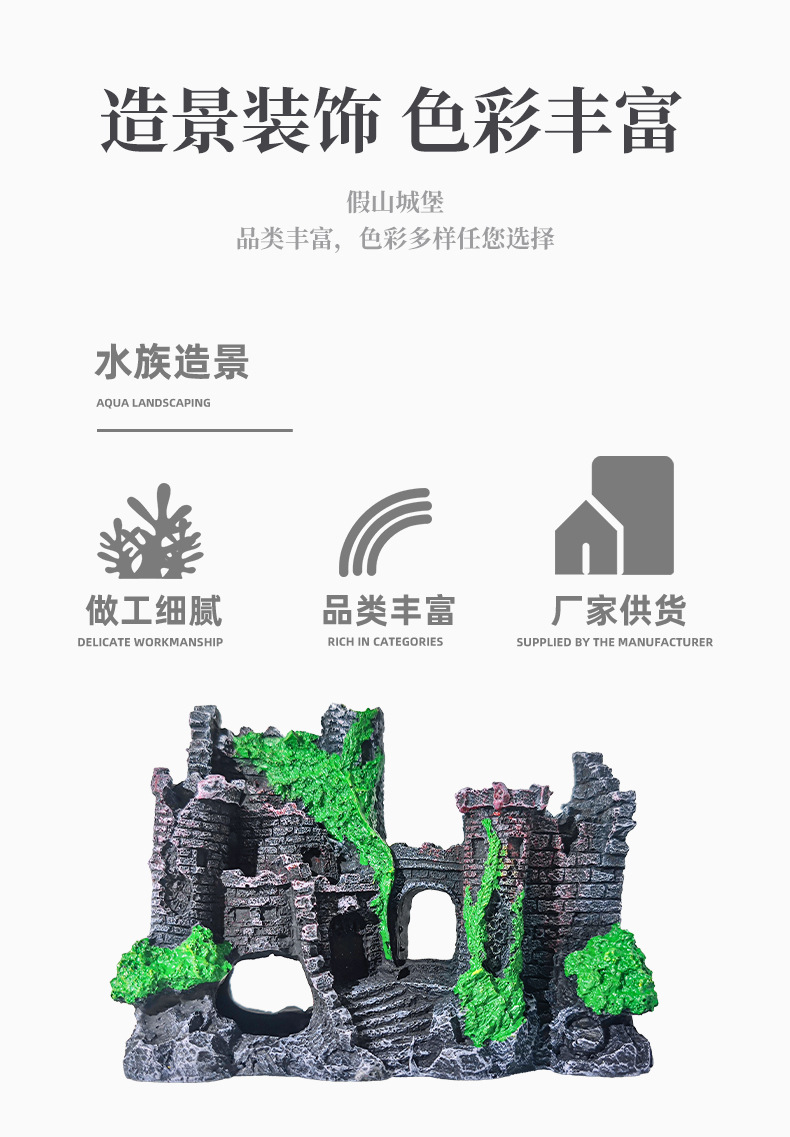 인기 있는 해외 수족관 장식품, 유럽풍 고대 성 동물 장식, 정원 조경용 작은 인공 암석, 미니어처 암석 동굴
