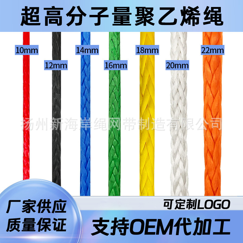 厂家直销多色 12股超高分子绳 耐磨耐拉 越野绳缆绳 UHMWPE编织绳