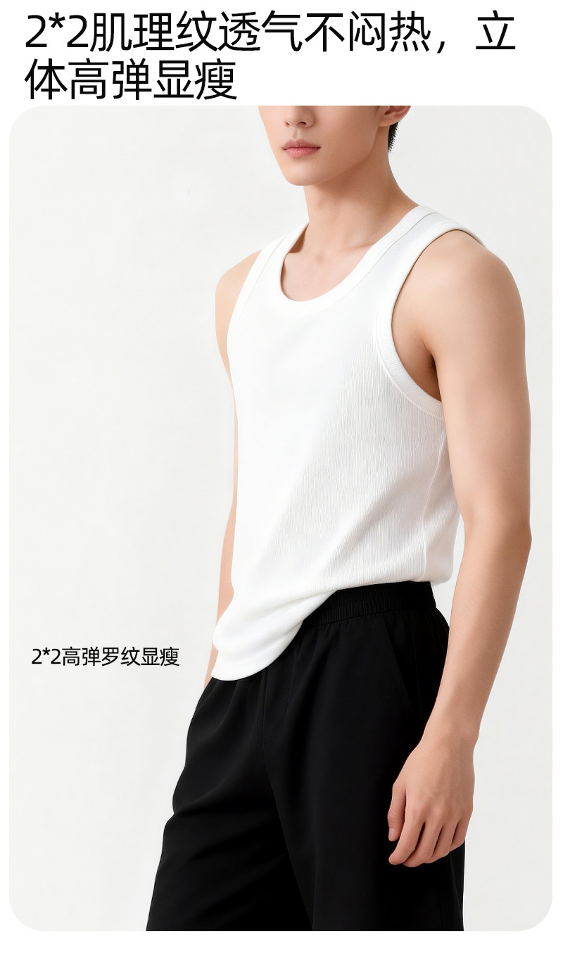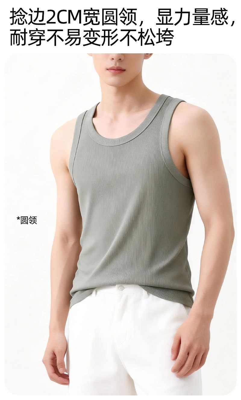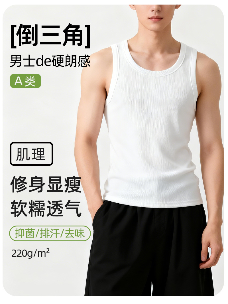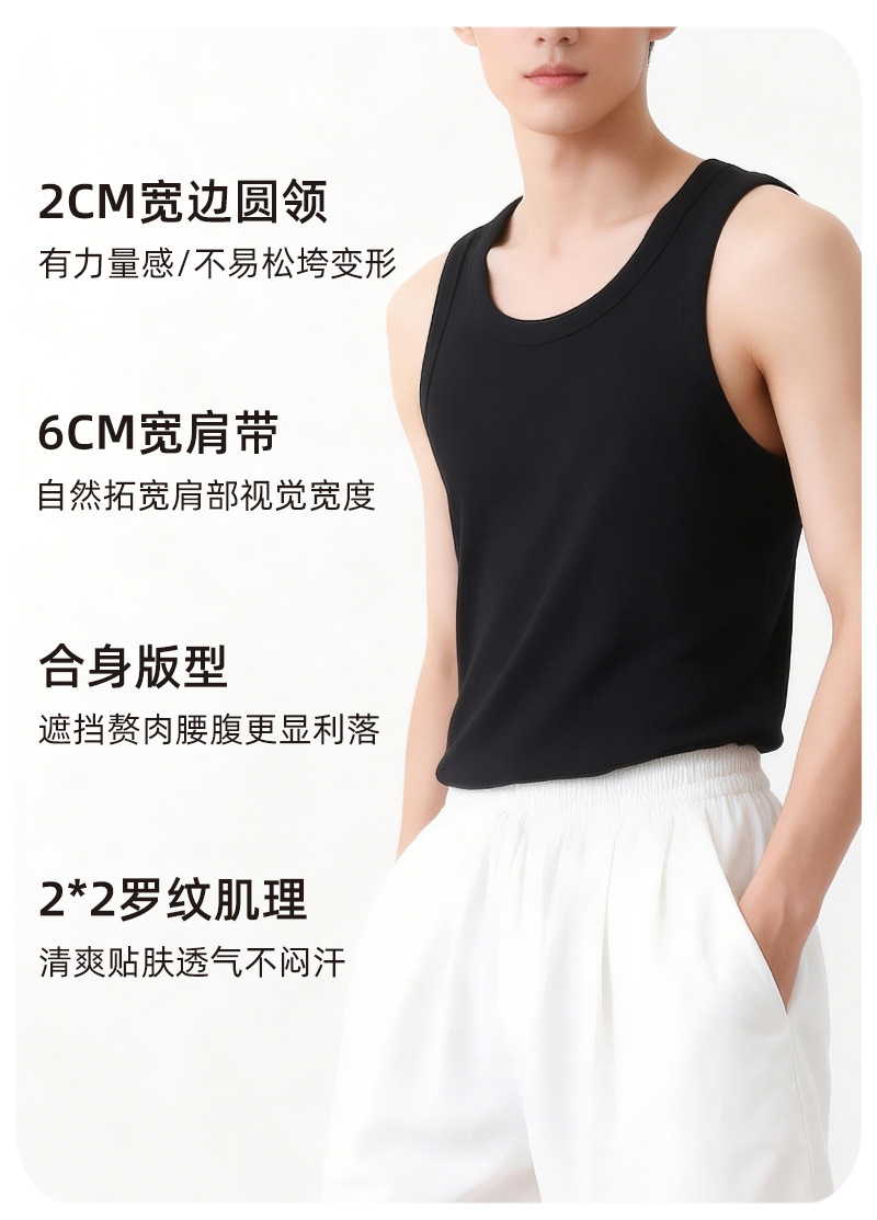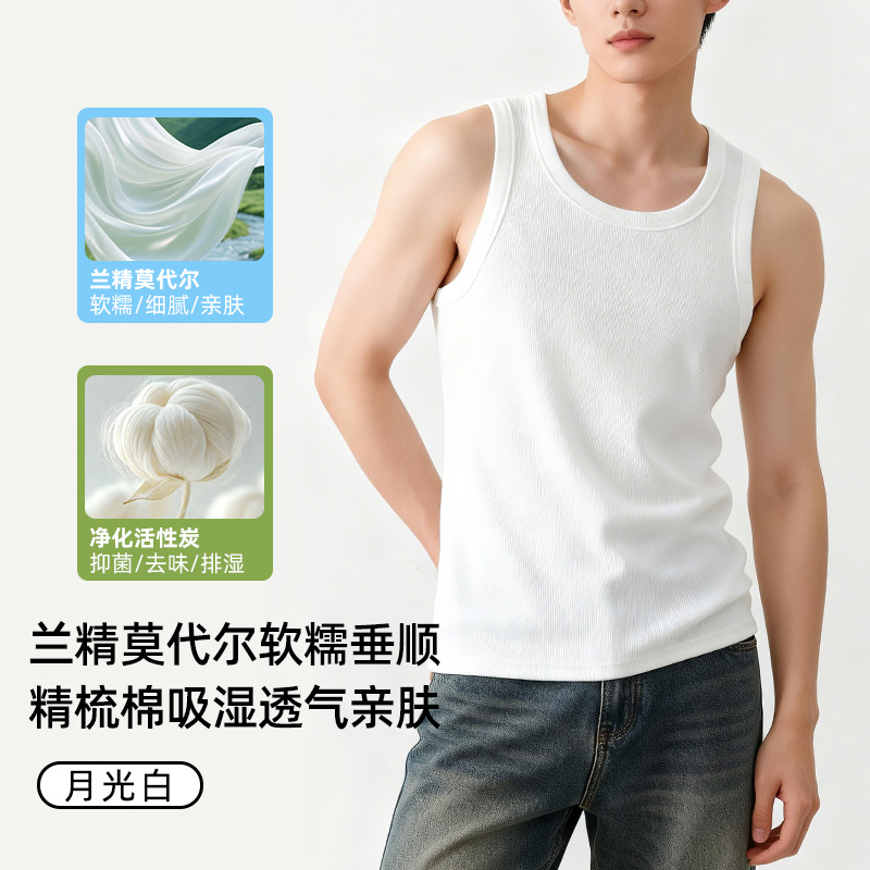【란징 모달】시원한 헤비웨이트 민소매 남성용 머슬 티셔츠, 흡습, 통기성, 캐주얼 상의