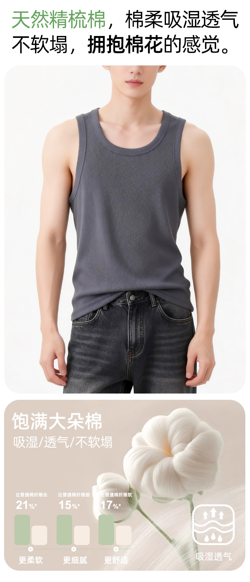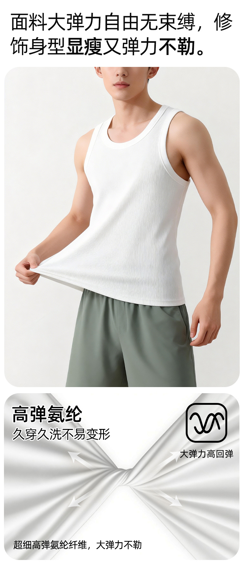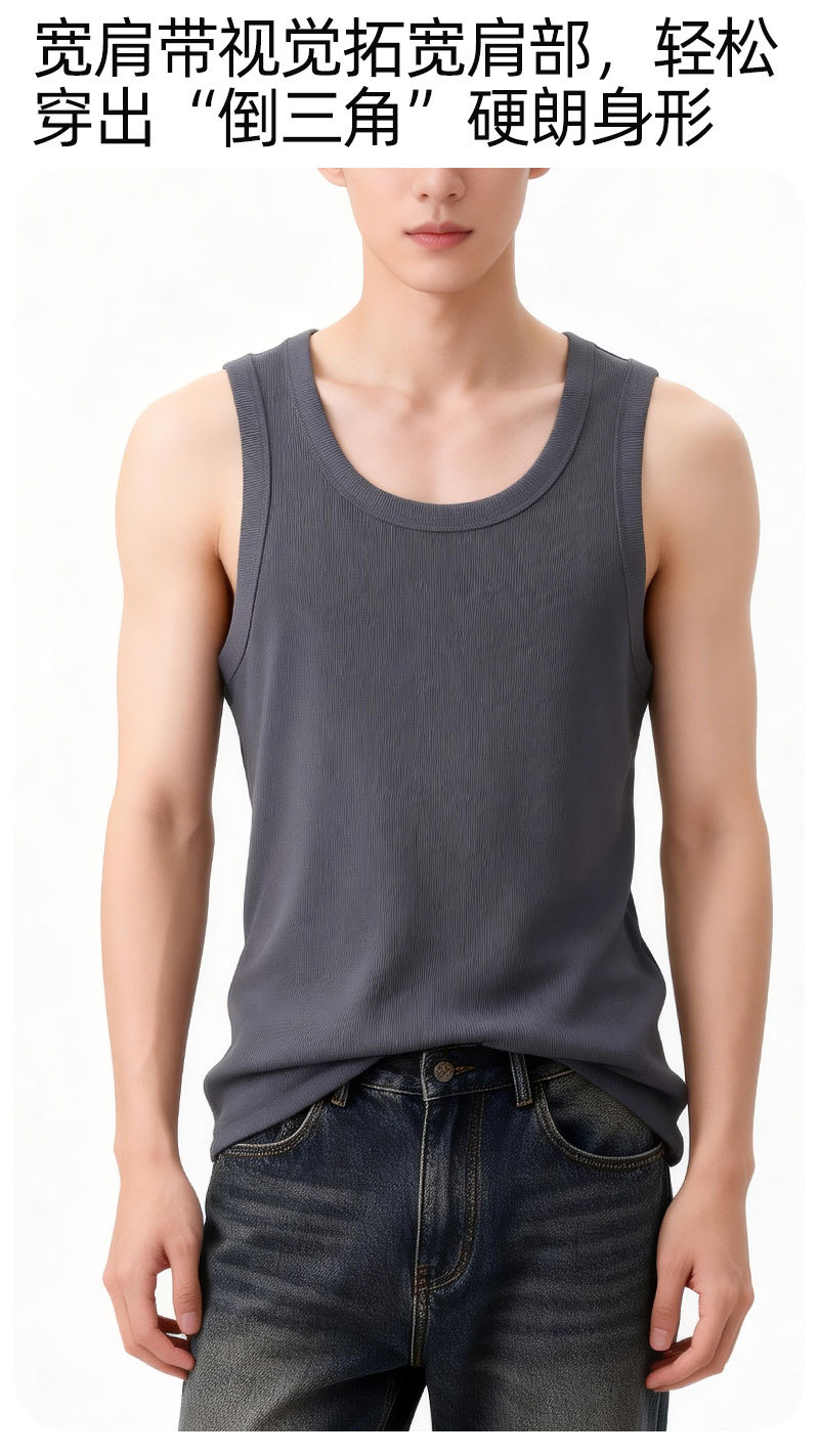 【란징 모달】시원한 헤비웨이트 민소매 남성용 머슬 티셔츠, 흡습, 통기성, 캐주얼 상의