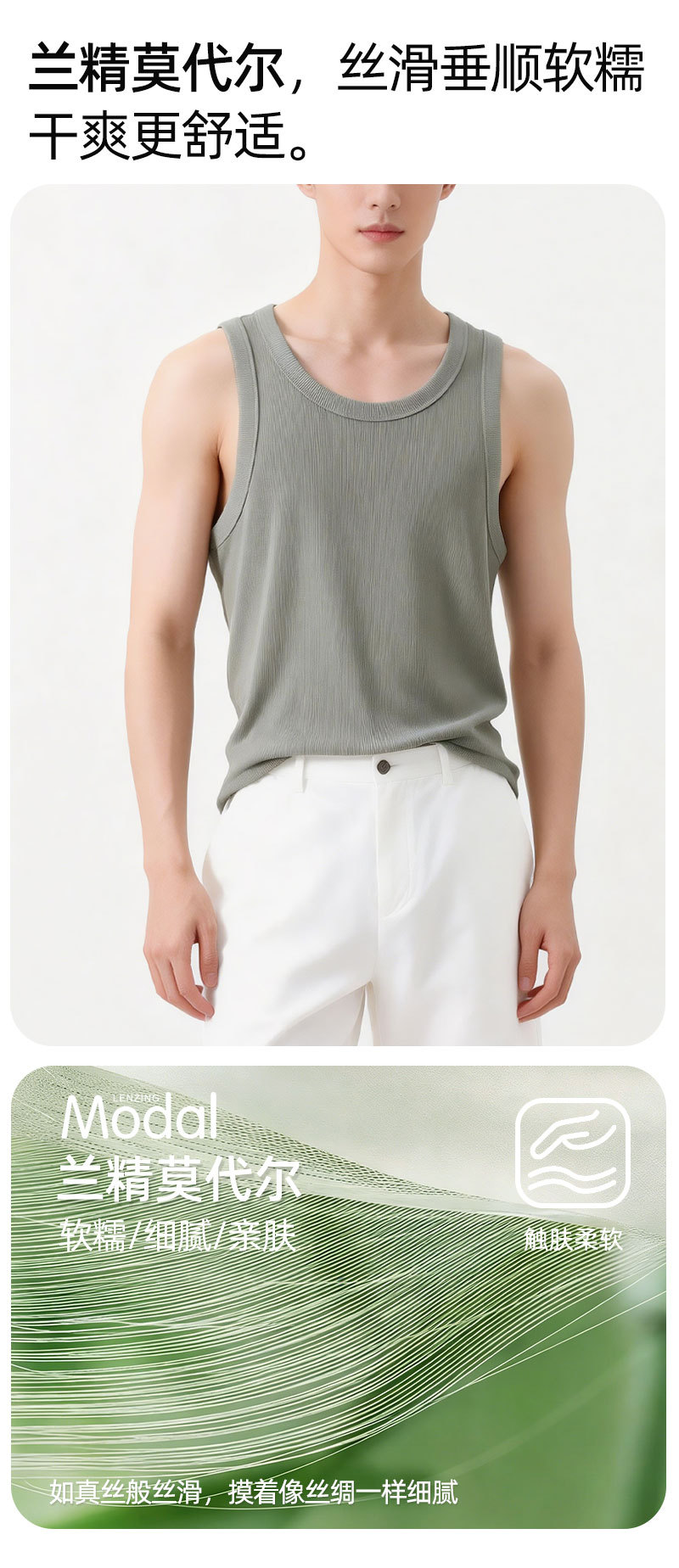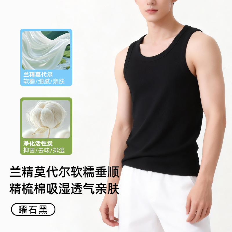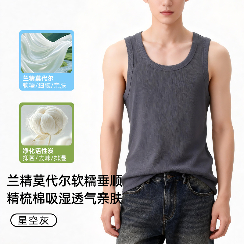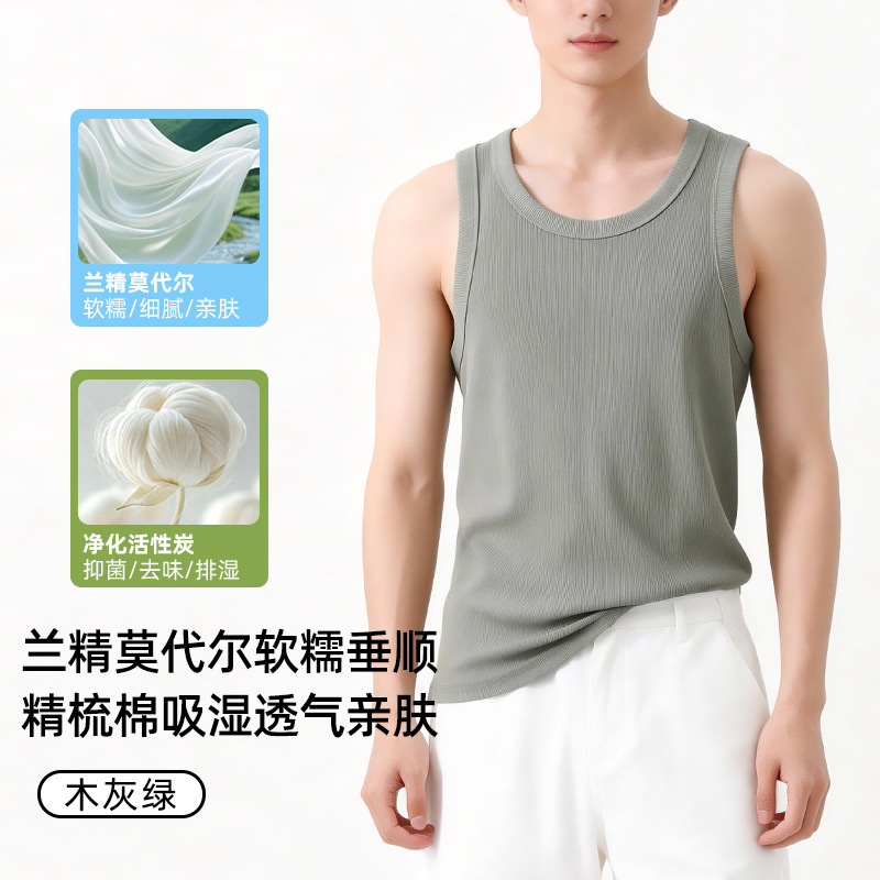 【란징 모달】시원한 헤비웨이트 민소매 남성용 머슬 티셔츠, 흡습, 통기성, 캐주얼 상의스토어 가기