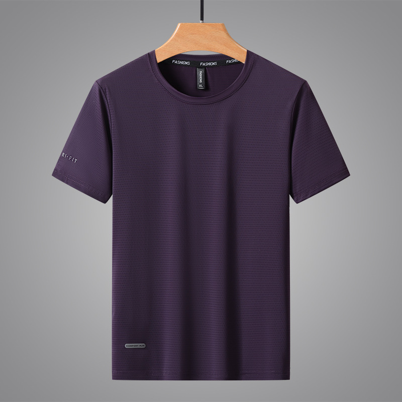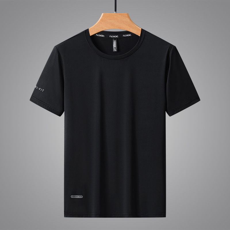여름 새로운 스타일 얇은 반팔 티셔츠 남성용 스포츠 캐주얼 속건 통기성 남성용 티셔츠 아이스 실크 남성용 플러스 사이즈 반팔 티셔츠