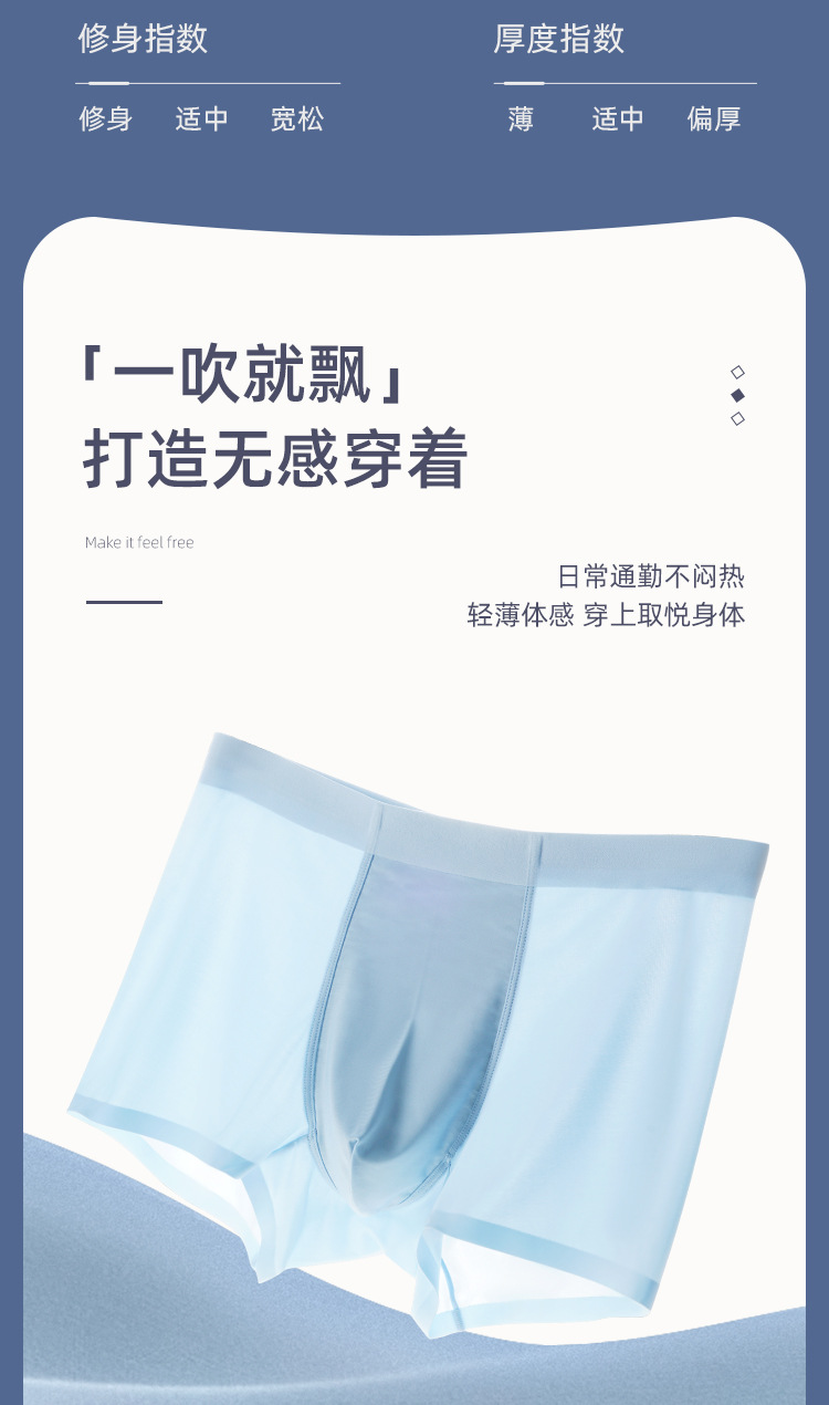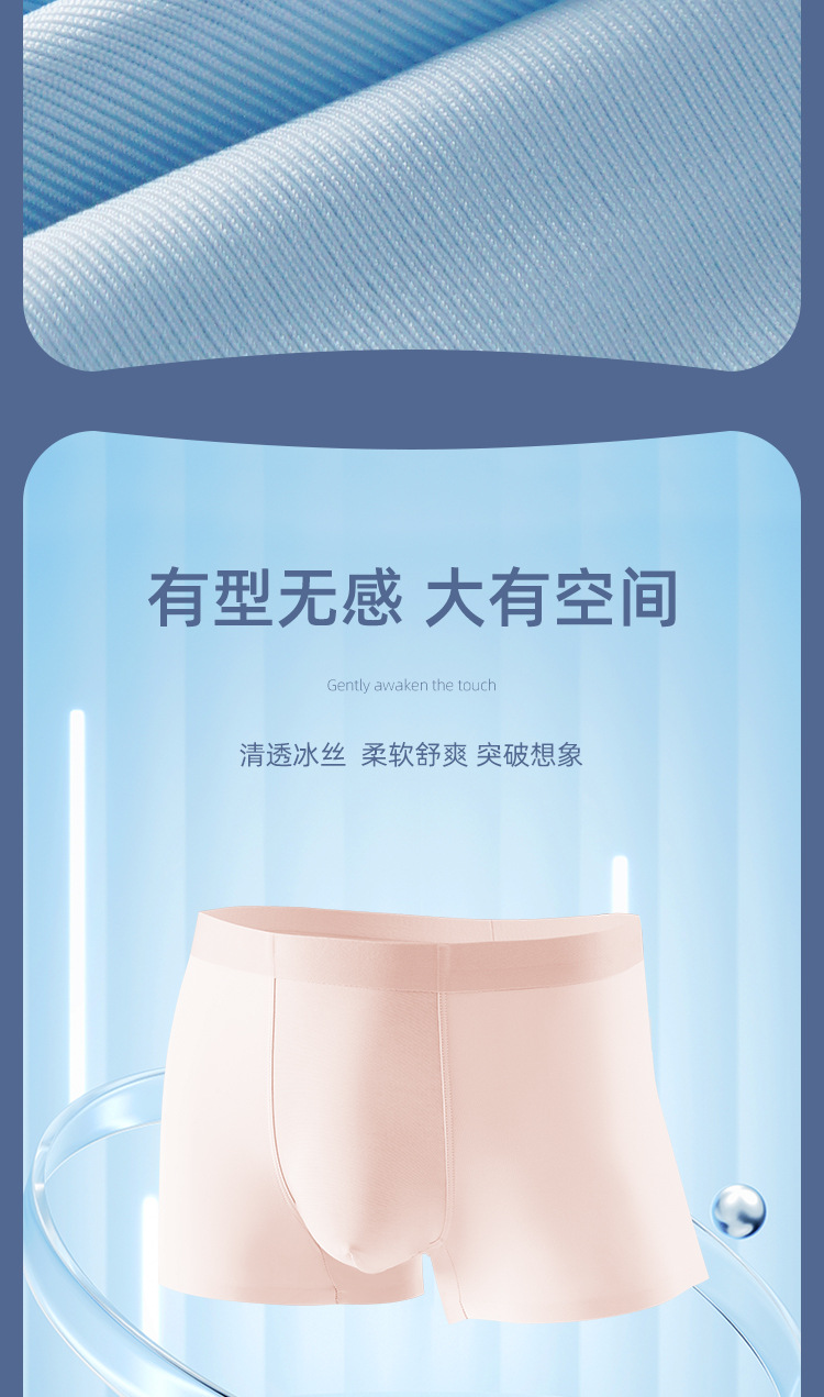 여름 얇은 아이스 실크 속옷 남성 그래 핀 항균 가랑이 원활한 복서 바지 남성 허리 포 코너 바지 도매