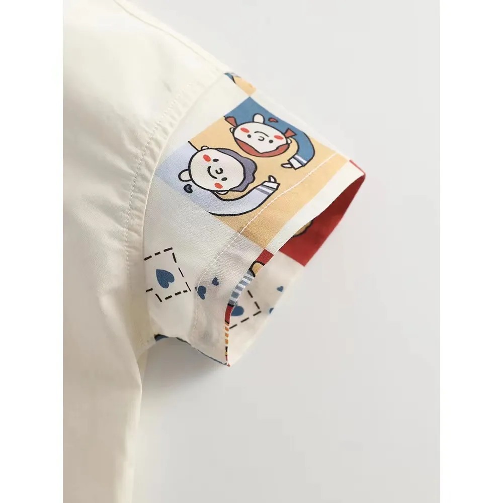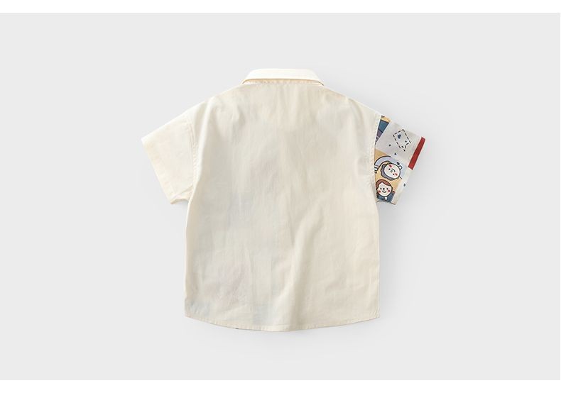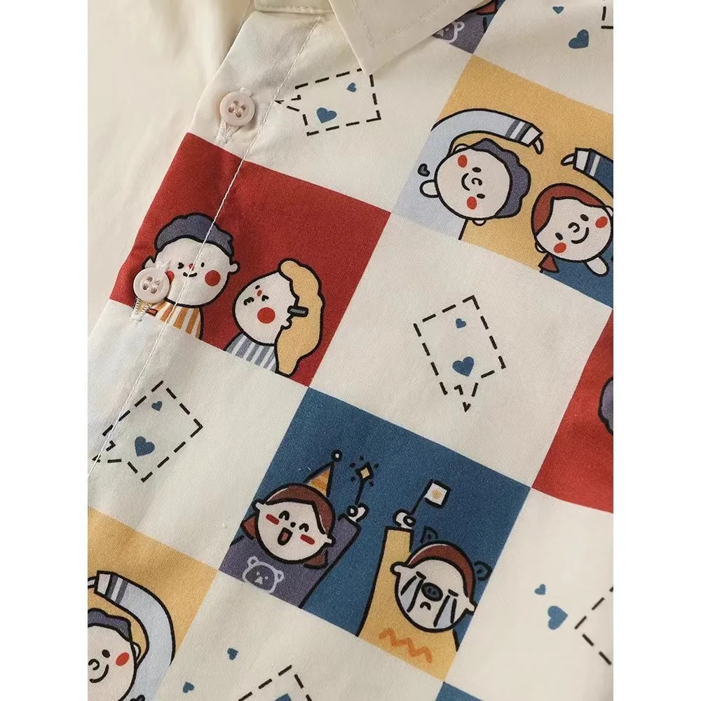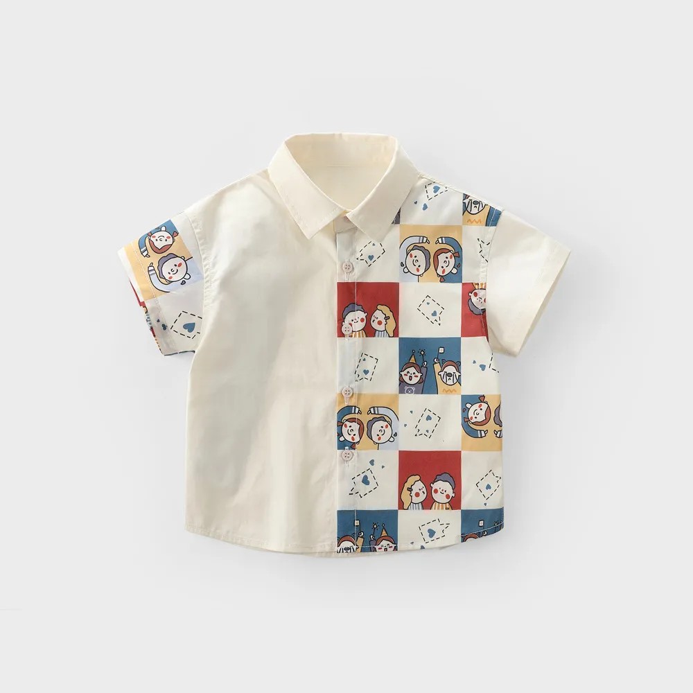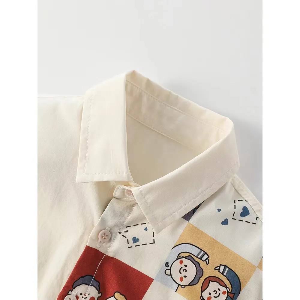 2024년 여름 새로운 스티치 애니메이션 격자 무늬 반팔 셔츠 중소 어린이를 위한 귀엽고 세련된 서양식 셔츠스토어 가기