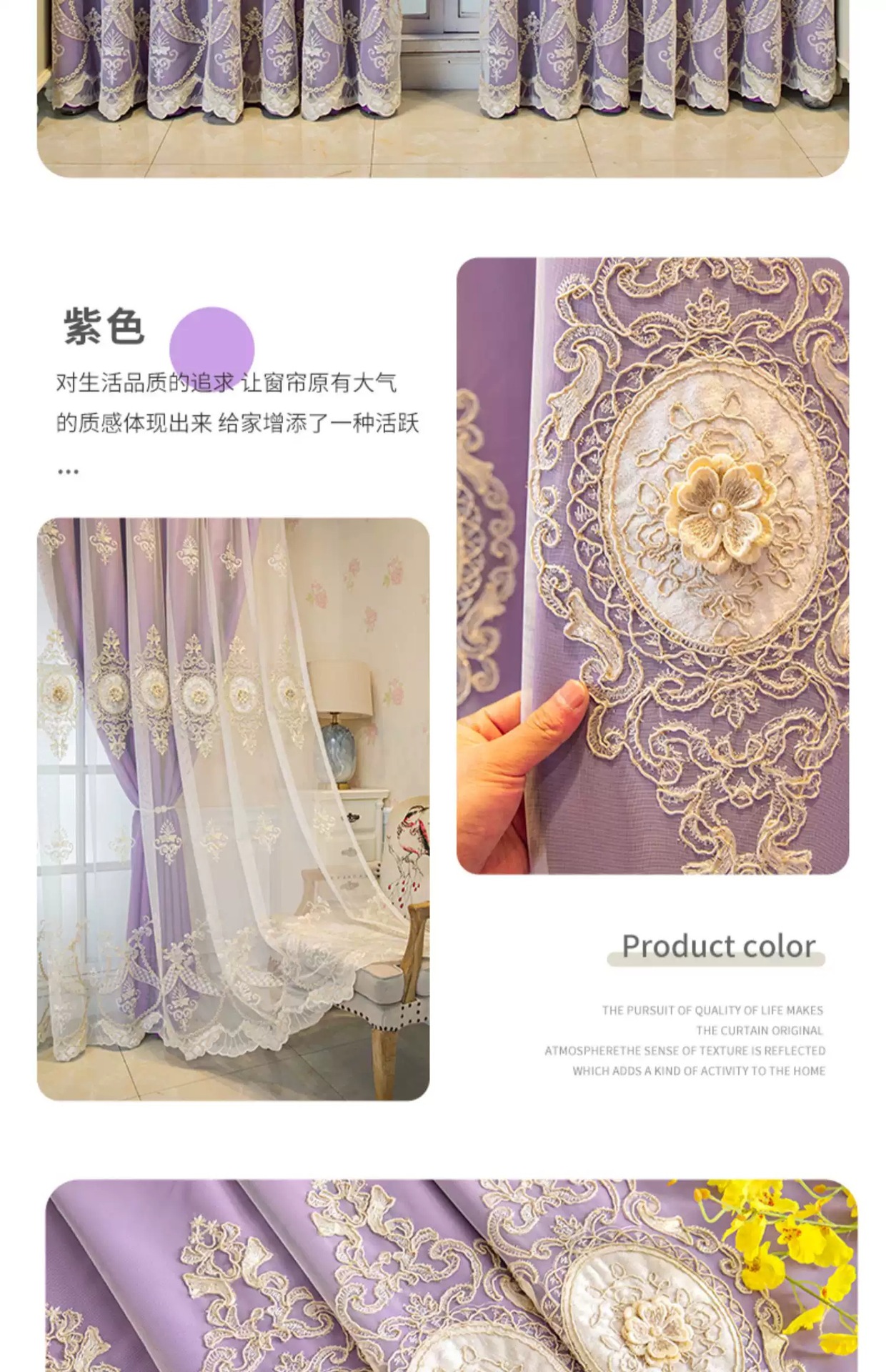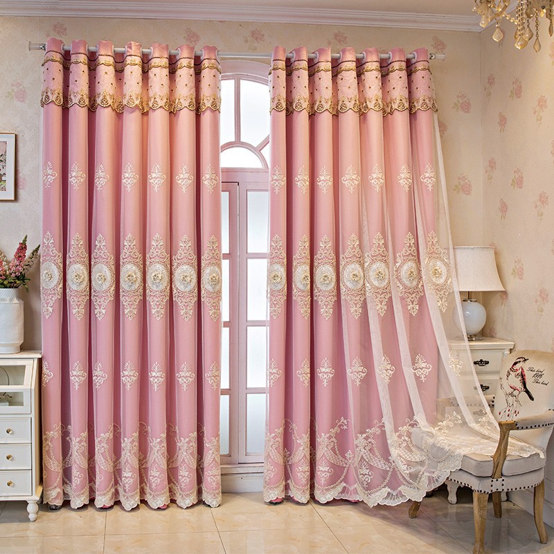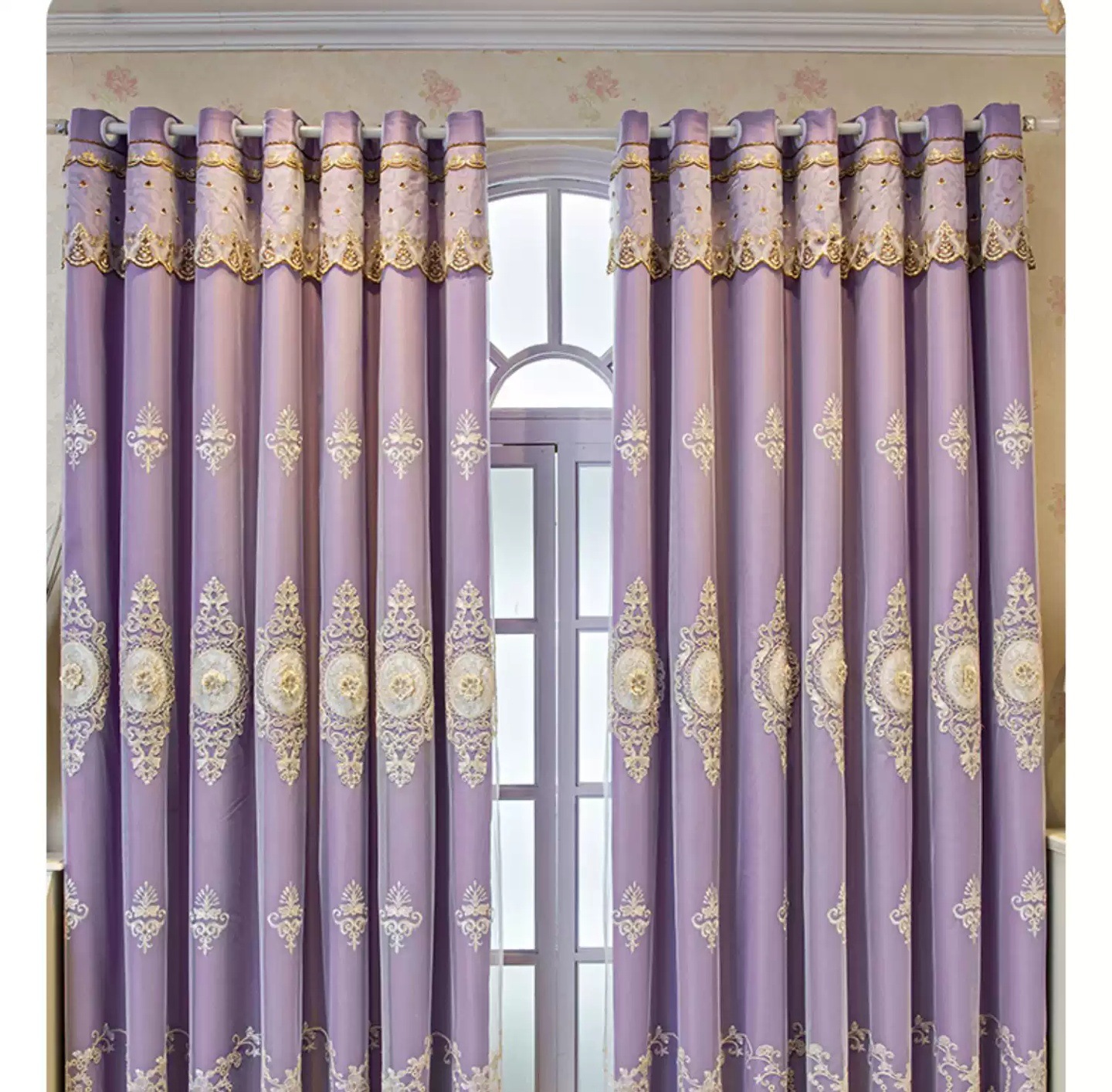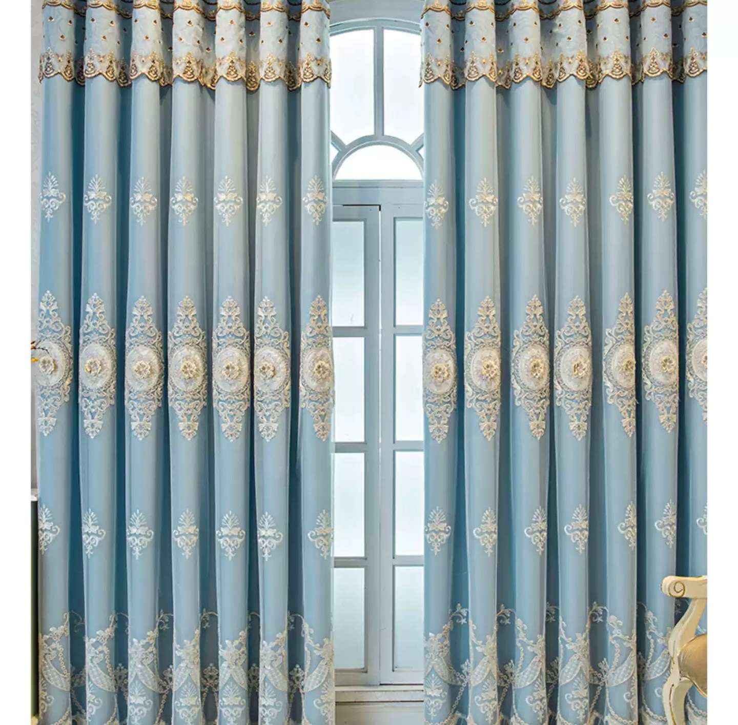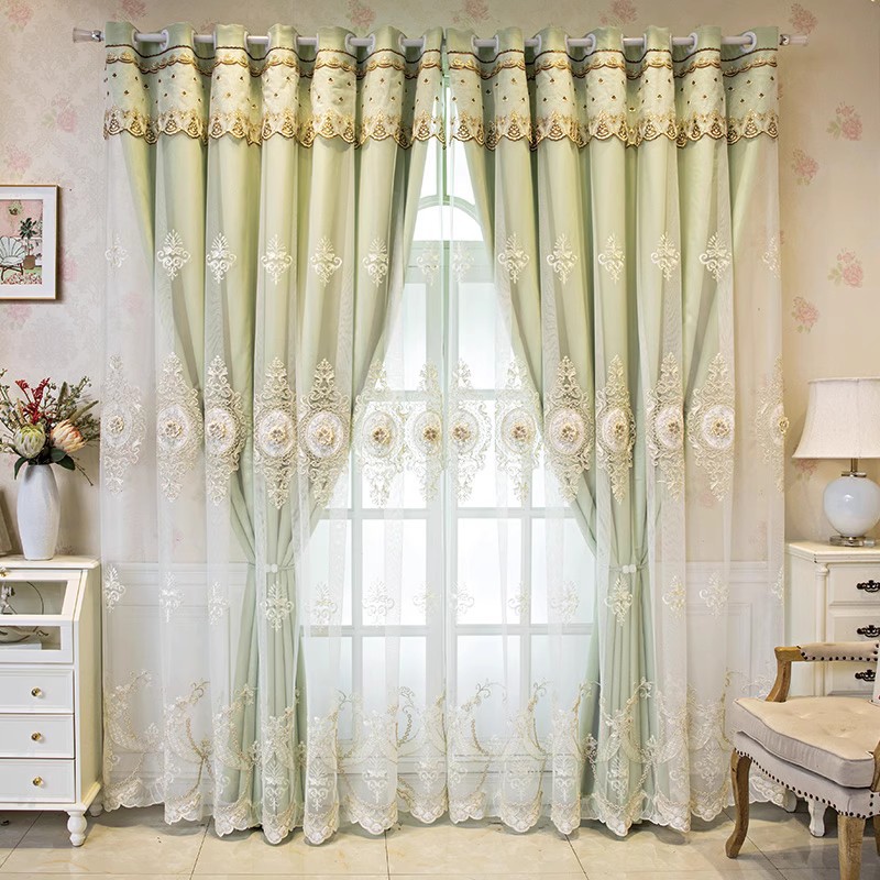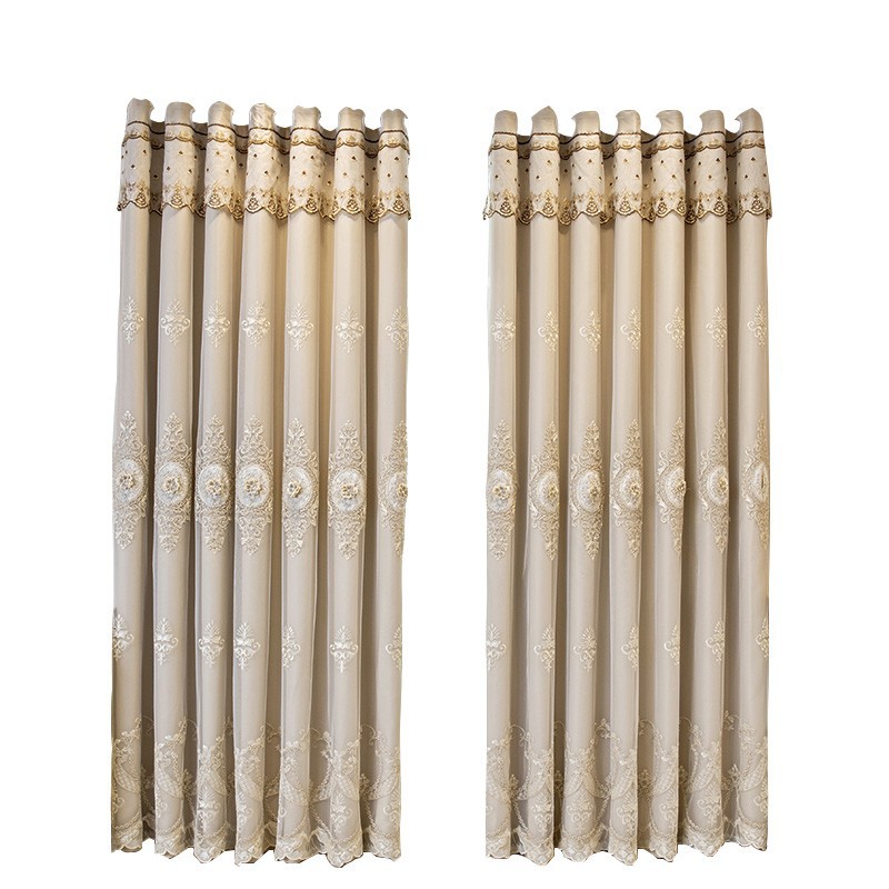 전체 음영 간단한 더블 레이어 커튼 천 원사 통합 완성 된 거실 침실 양각 자수 음영 커튼