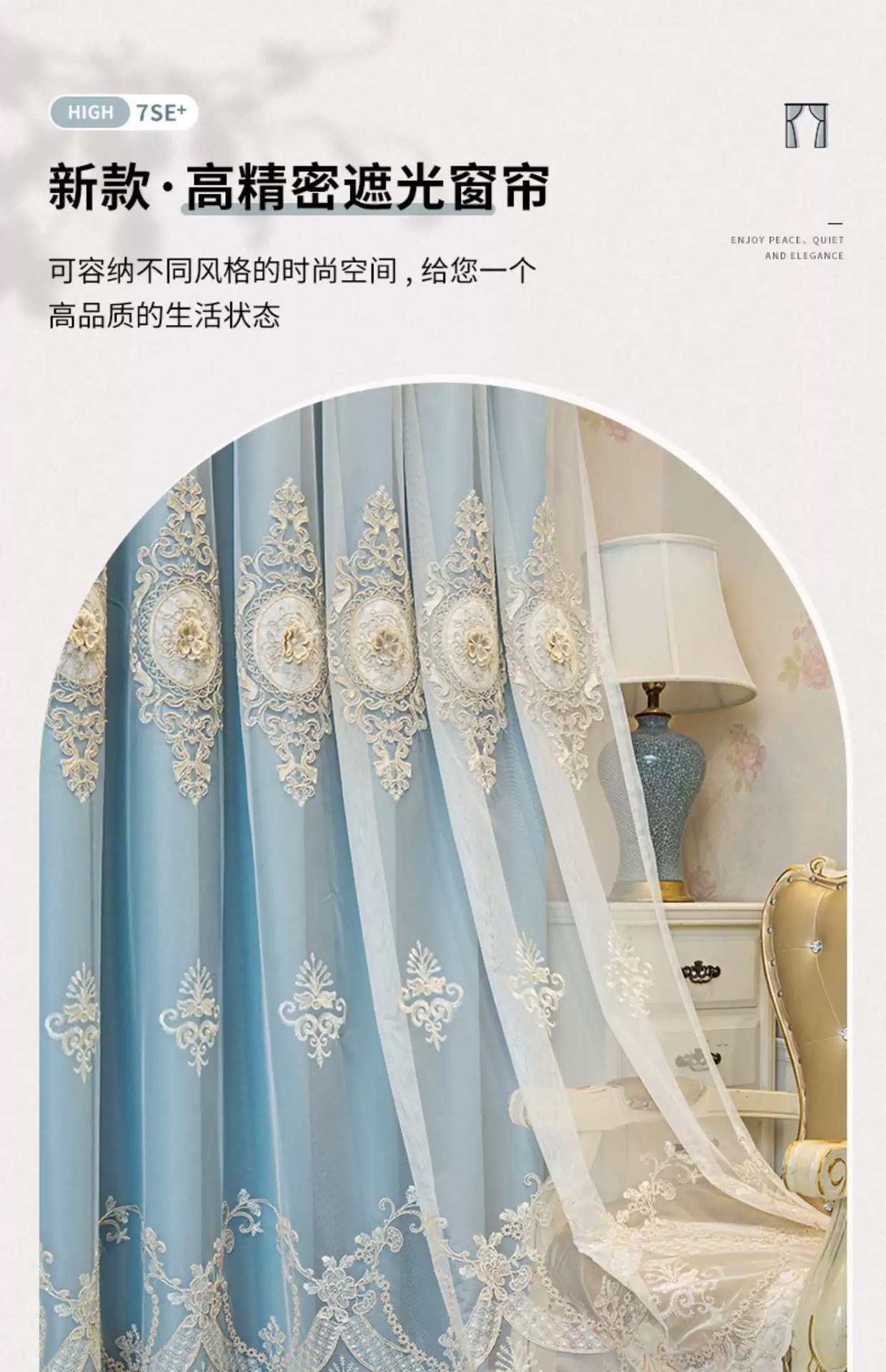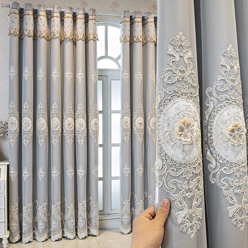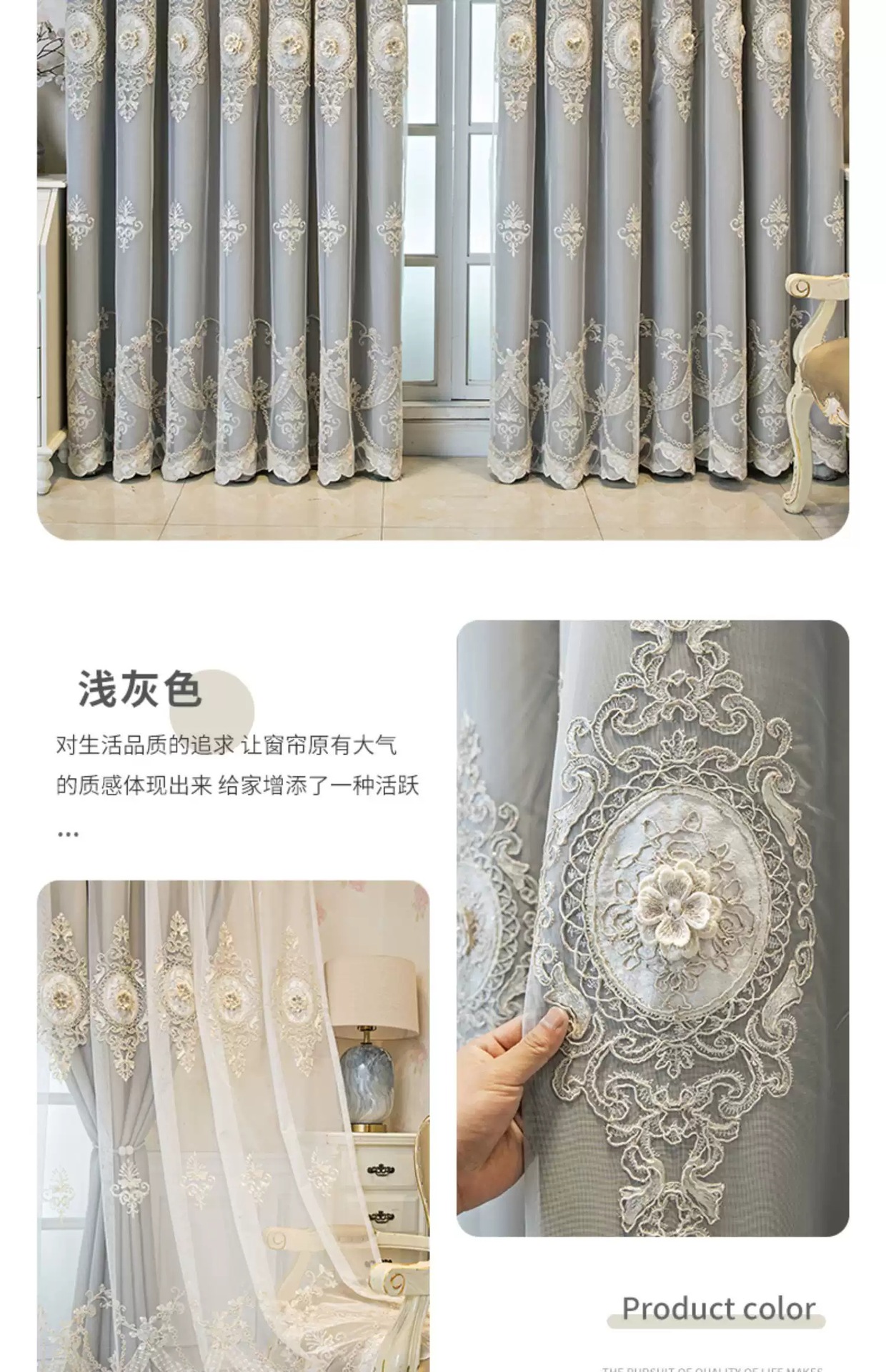 전체 음영 간단한 더블 레이어 커튼 천 원사 통합 완성 된 거실 침실 양각 자수 음영 커튼스토어 가기