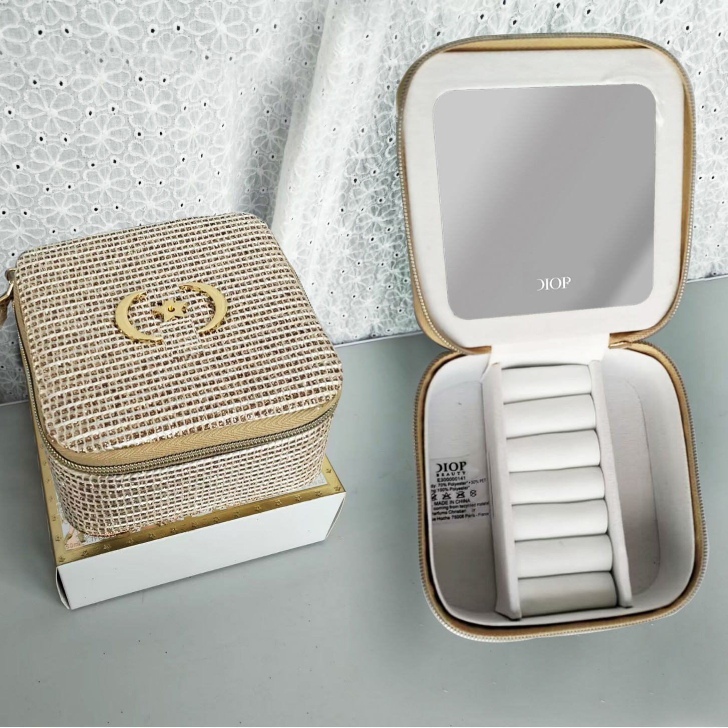 • 격자 무늬 메쉬 화장품 가방(선물 상자 포함)