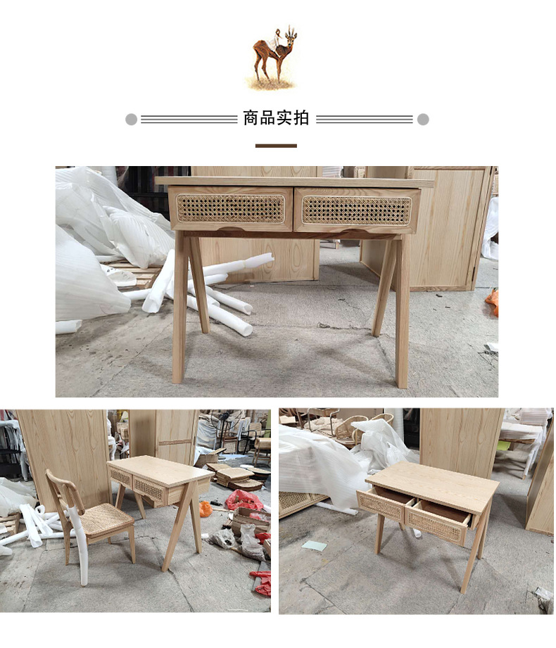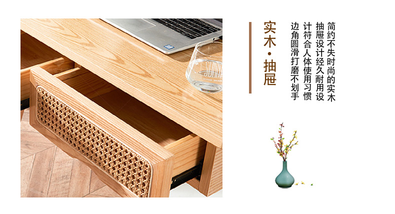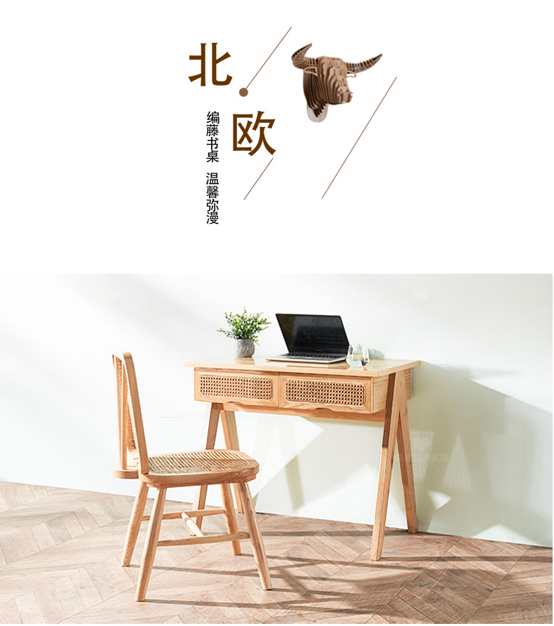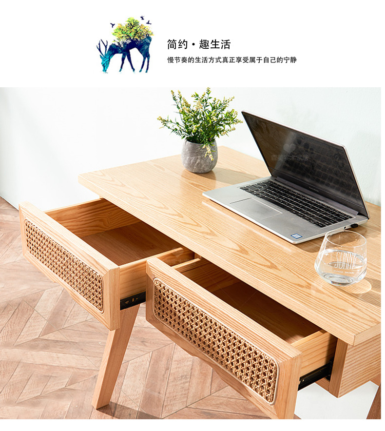 북유럽, 일본 및 한국식 홈스테이 호텔 모던 심플 스터디 모델 룸 단단한 나무 등나무 책상 의자 컴퓨터 책상스토어 가기