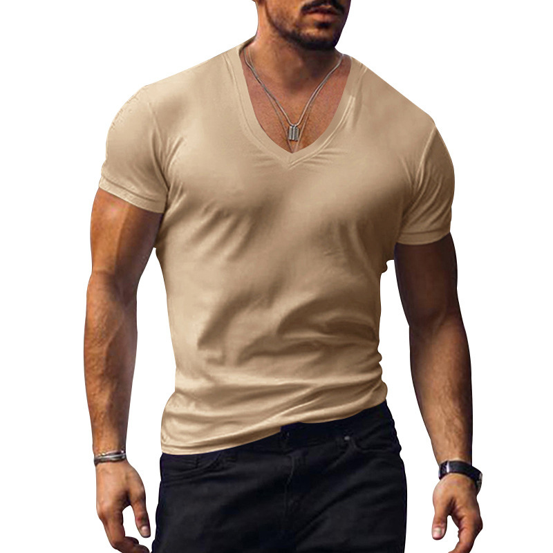 AliExpress 남성용 티셔츠 크로스 보더 탑 유럽과 미국 대외 무역 남성용 V-넥 단색 플러스 사이즈 캐주얼 티셔츠 반팔 남성 의류스토어 가기