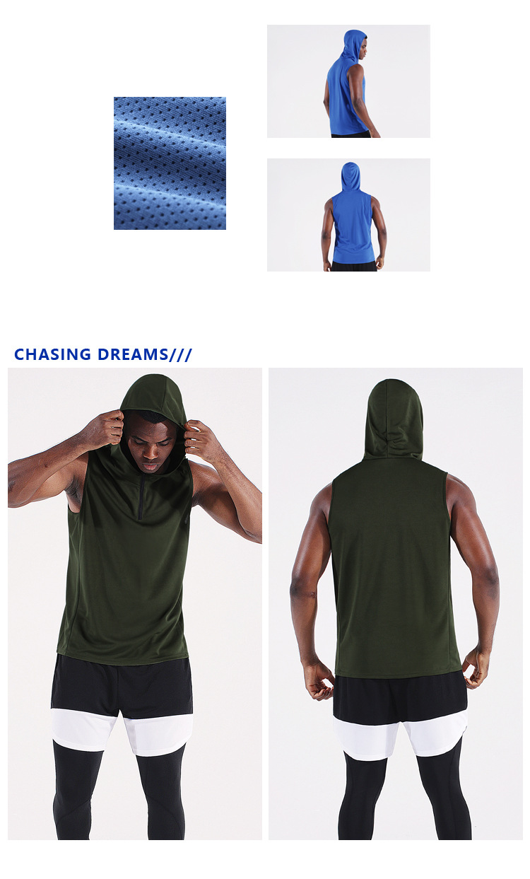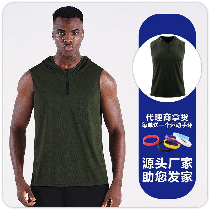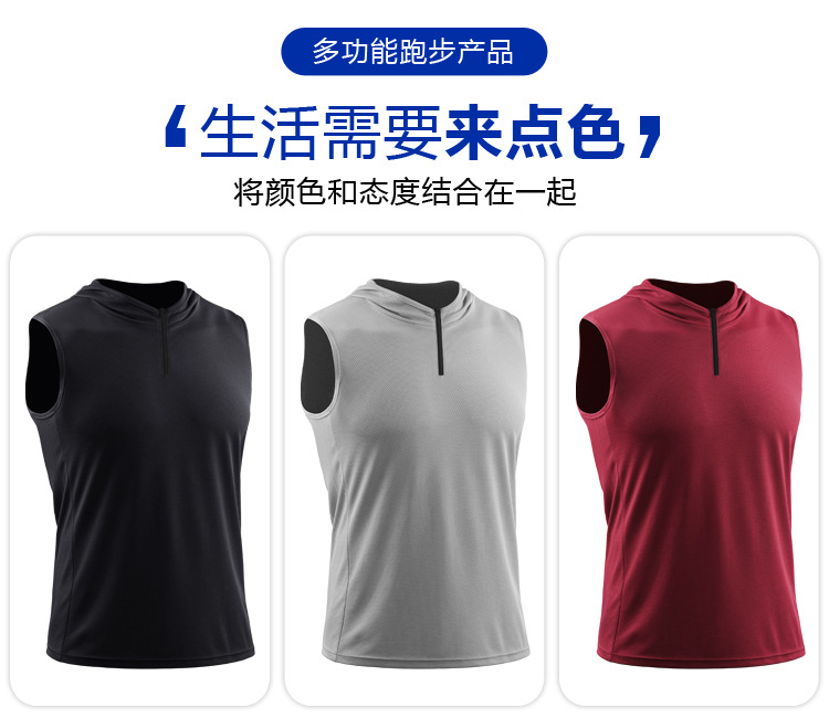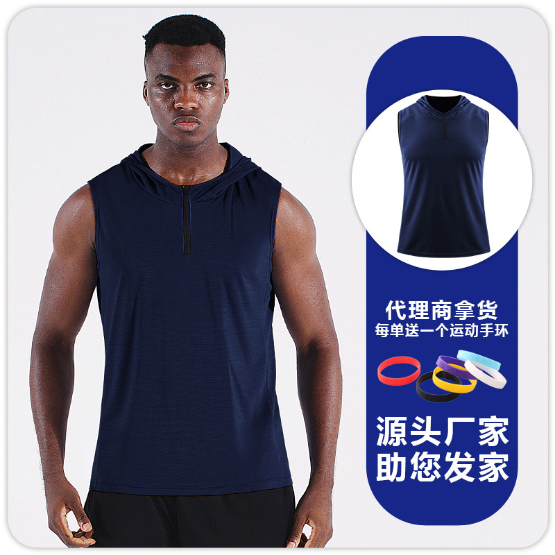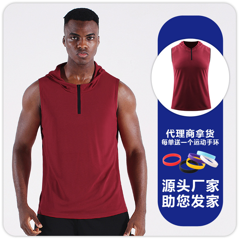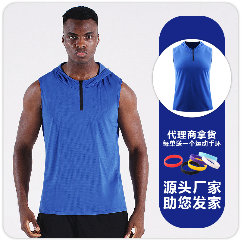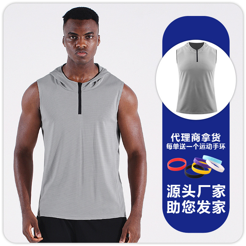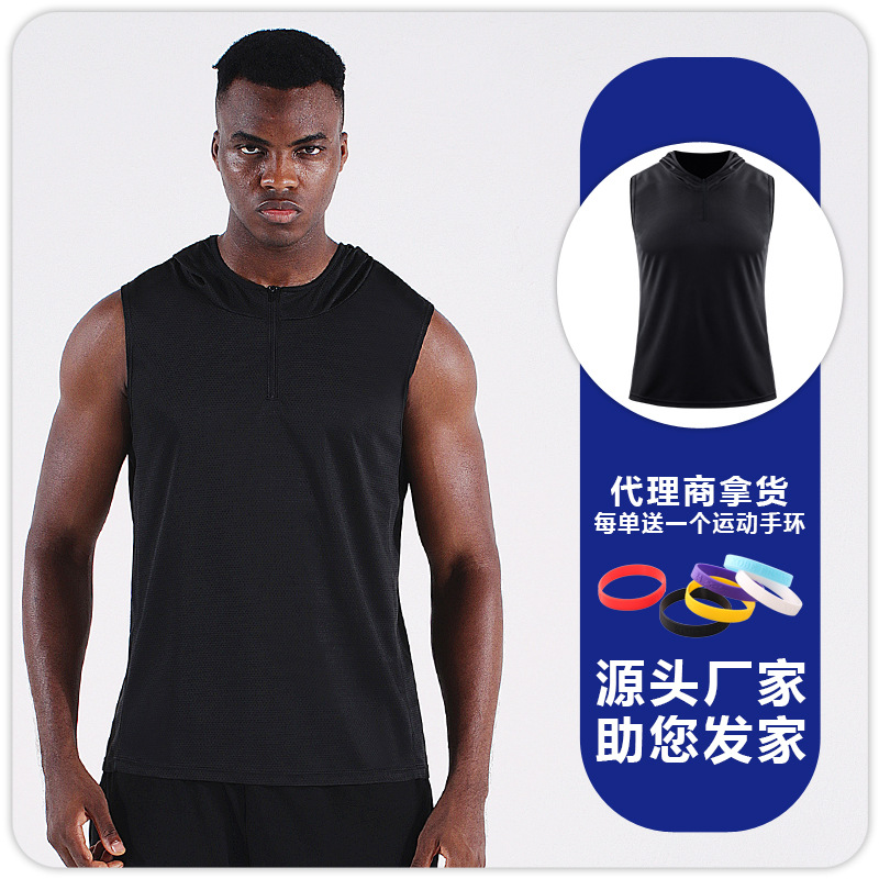 남자의 여름 후드 지퍼 스포츠 조끼 웨이슬 민소매 피트니스 의류 느슨한 실행 농구 속건 옷 얇은