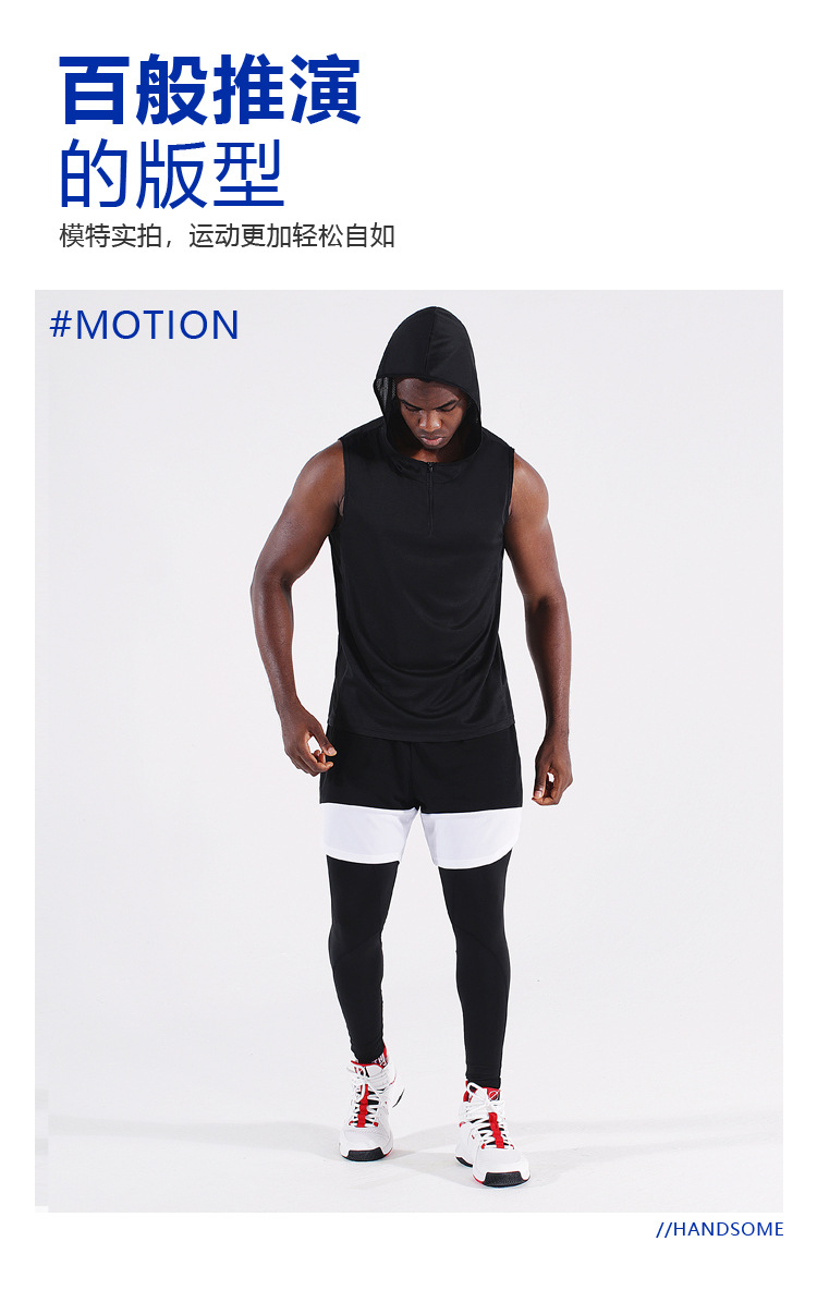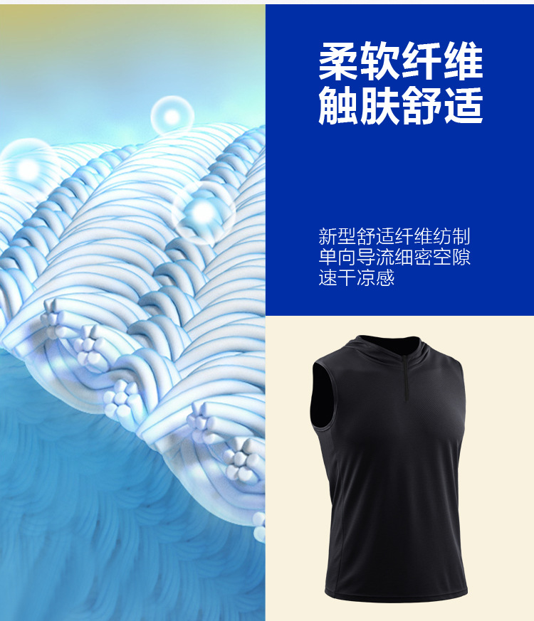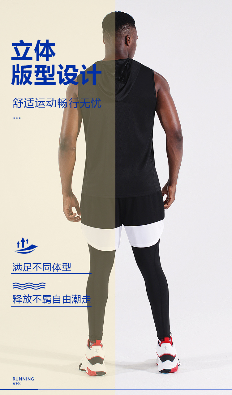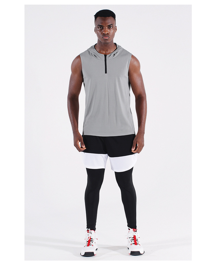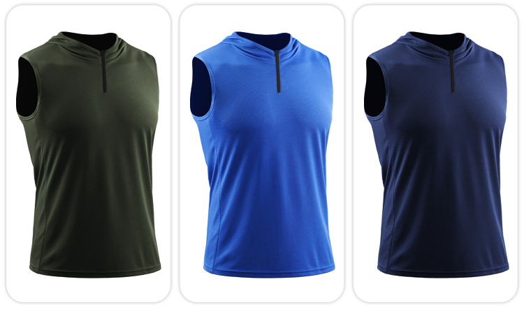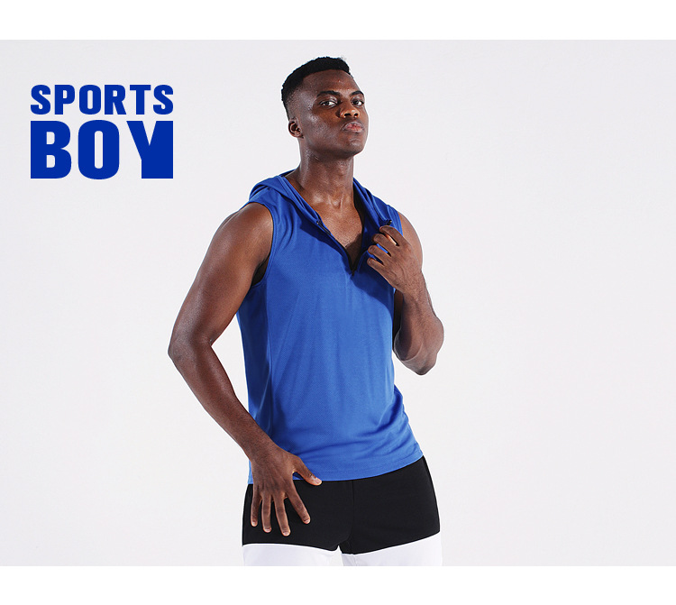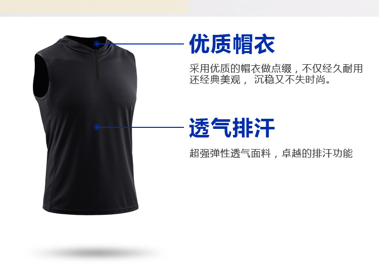 남자의 여름 후드 지퍼 스포츠 조끼 웨이슬 민소매 피트니스 의류 느슨한 실행 농구 속건 옷 얇은