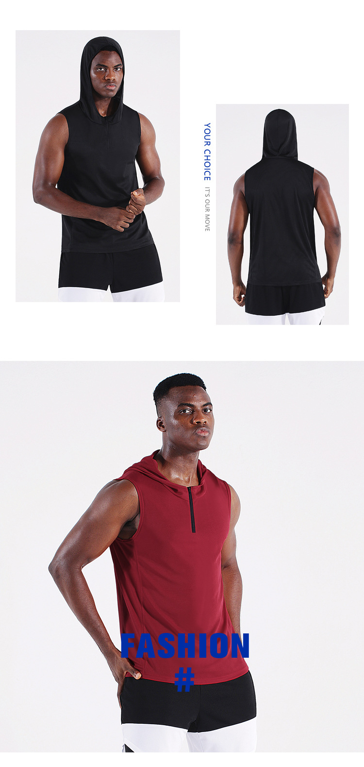 남자의 여름 후드 지퍼 스포츠 조끼 웨이슬 민소매 피트니스 의류 느슨한 실행 농구 속건 옷 얇은스토어 가기