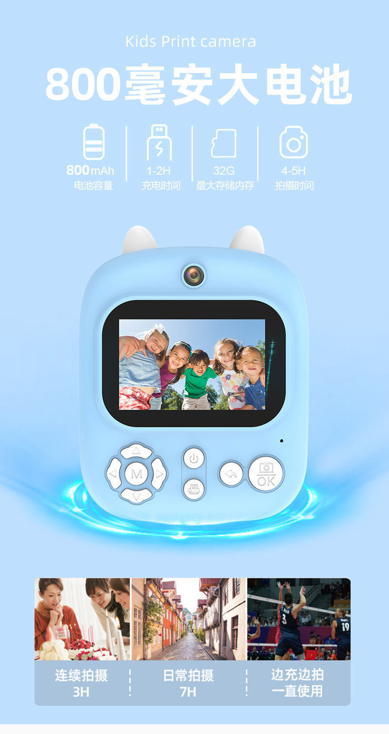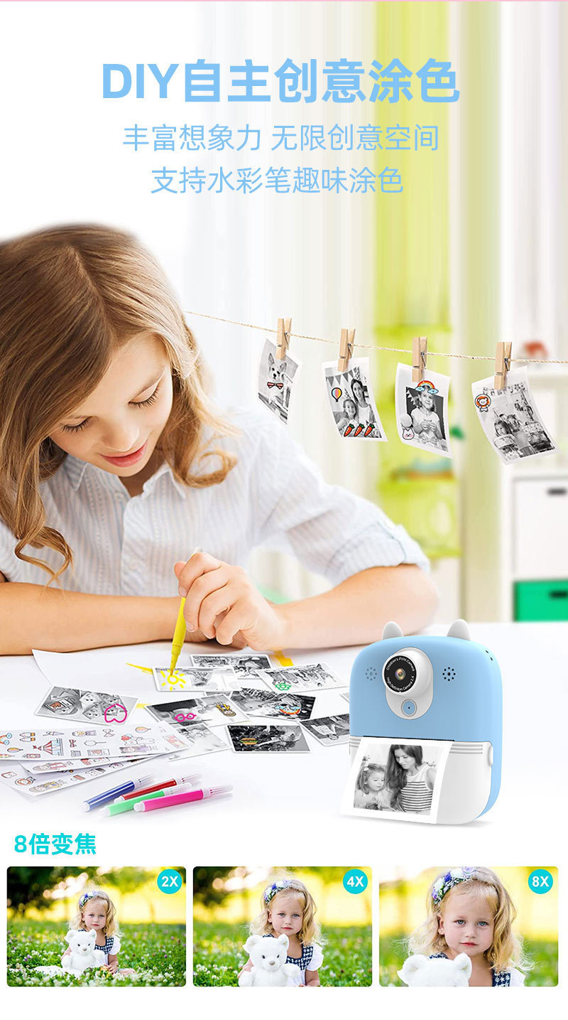 2023 신제품 공장 직접 공급 폴라로이드 잉크 프리 인쇄 0-12 세 어린이를 위한 흑백 즉석 인쇄 카메라스토어 가기