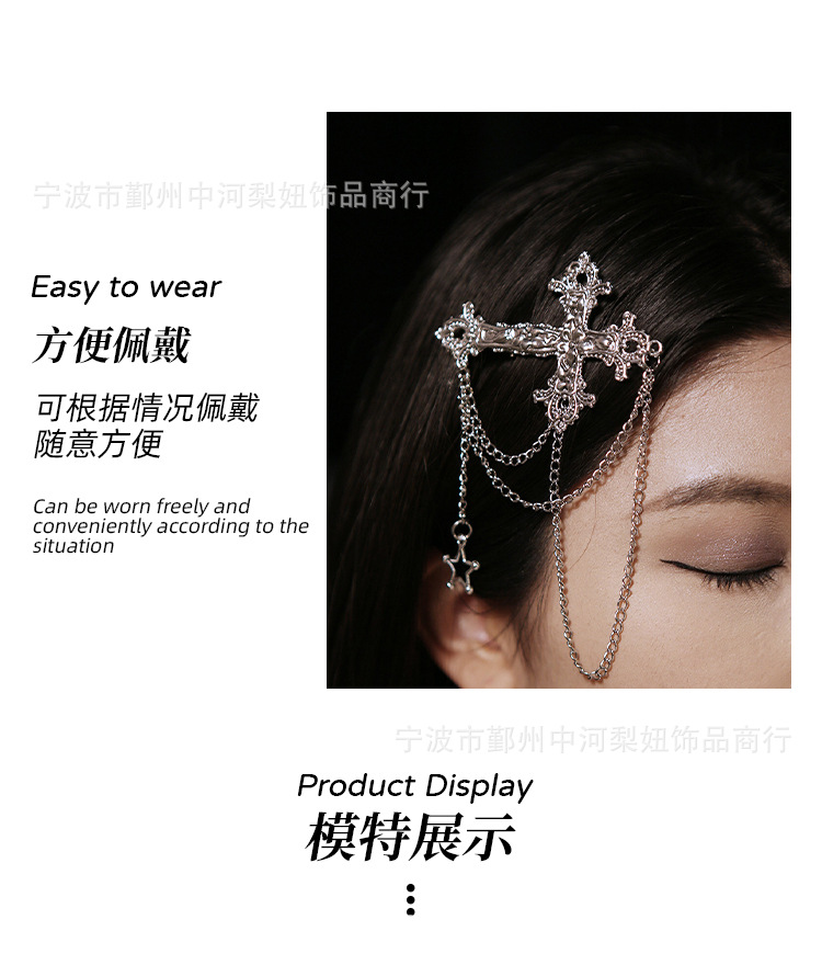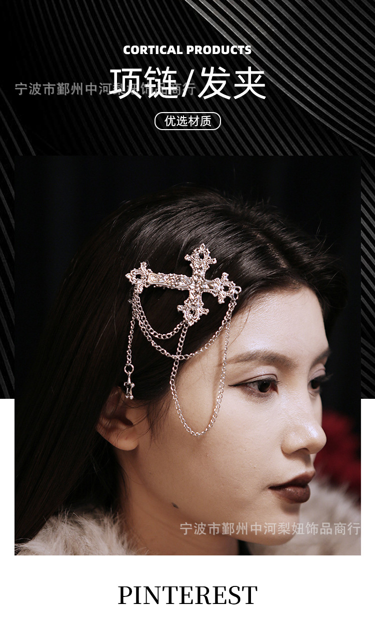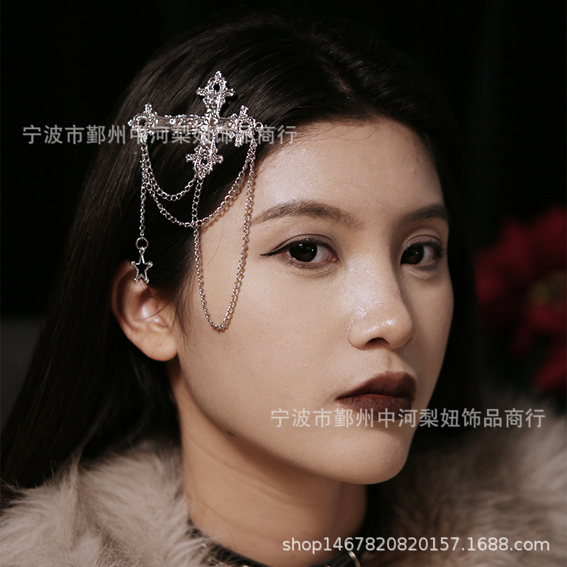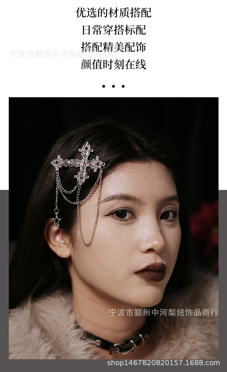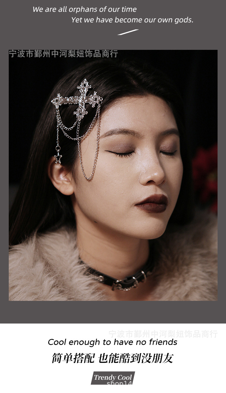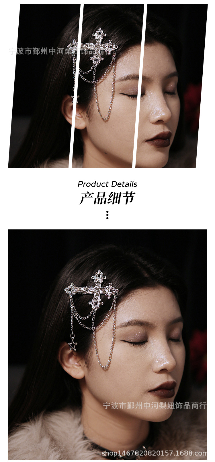 개성 다크 고딕 크로스 체인 머리핀 과장된 로리 액세서리 차가운 바람 스타 앞머리 머리핀 헤어 액세서리스토어 가기