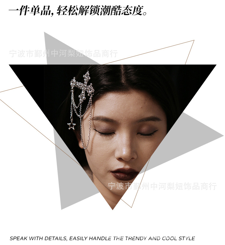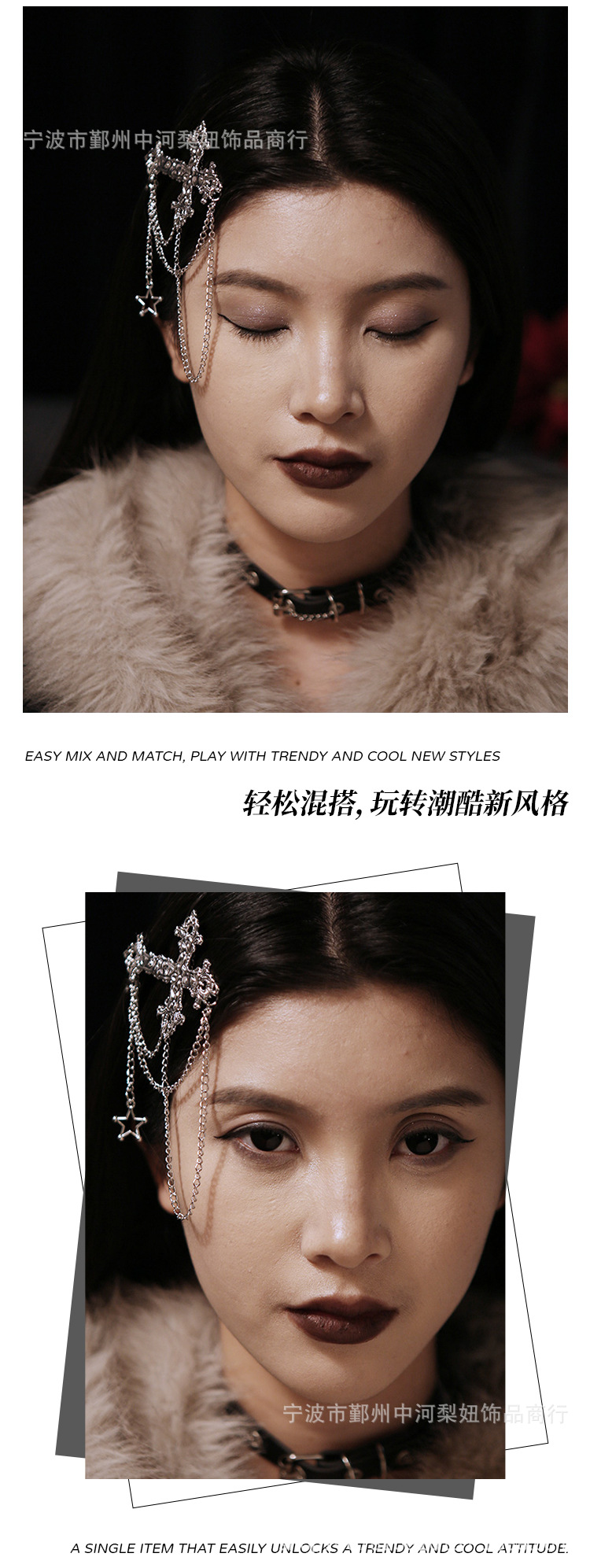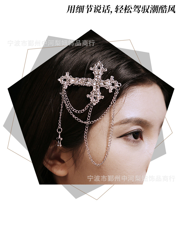 개성 다크 고딕 크로스 체인 머리핀 과장된 로리 액세서리 차가운 바람 스타 앞머리 머리핀 헤어 액세서리