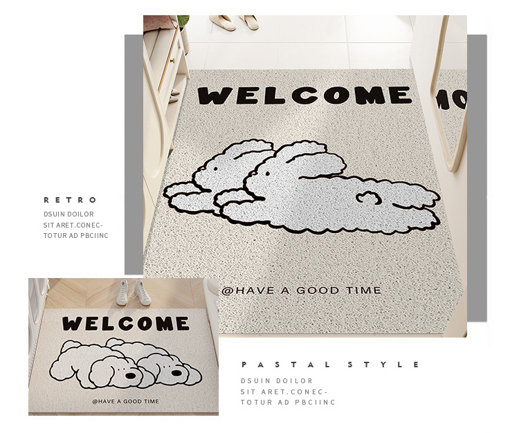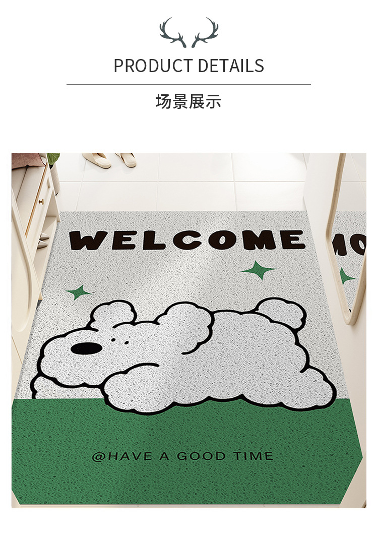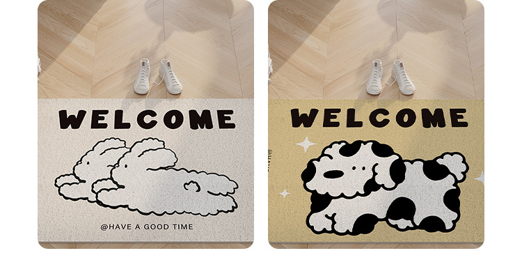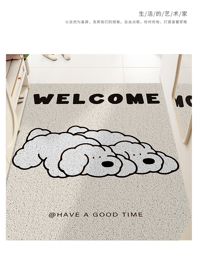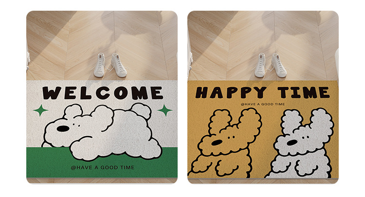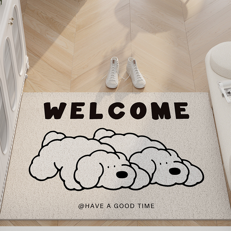 현관 매트, 얼룩 방지, 관리 용이, 미끄럼 방지, 만화 강아지 디자인, 가정용 출입구 매트, 실크 링 매트, 도매 가능스토어 가기