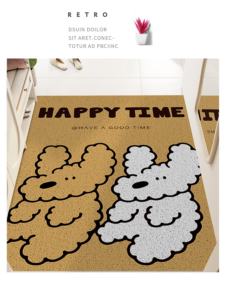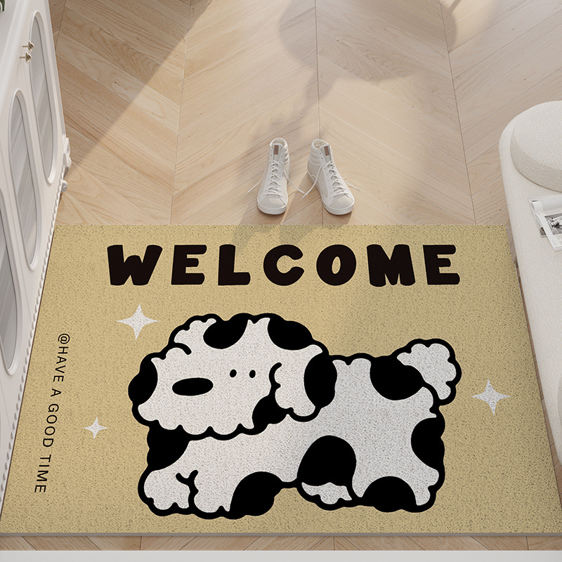 현관 매트, 얼룩 방지, 관리 용이, 미끄럼 방지, 만화 강아지 디자인, 가정용 출입구 매트, 실크 링 매트, 도매 가능