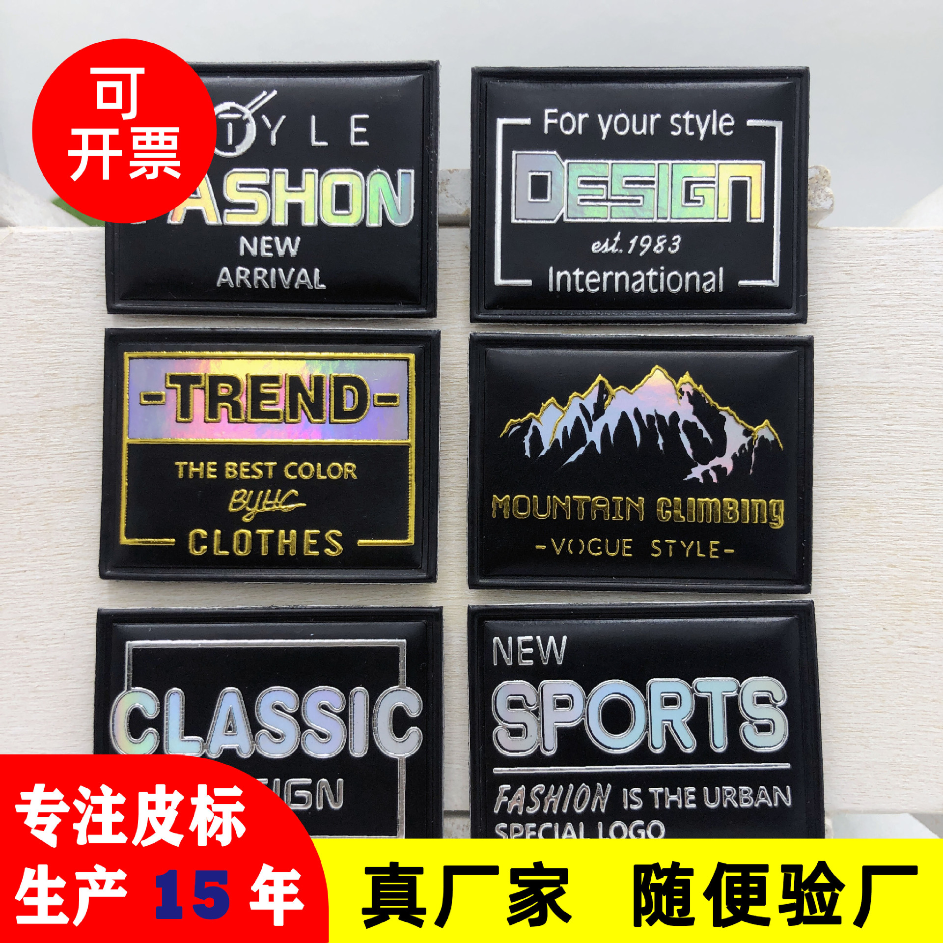 本厂主做皮标(跟皮料有关的皮条、皮袢、皮套、杯垫等)、pvc滴塑标/合模胶章、布标、TPU高周波电压标、刻字膜烫标、激光皮标、硅胶烫标、冲型皮标等,可以把不同材质复合,如滴塑复合到皮标上、tpu复合到织带上、刻字膜转压到皮标上、硅胶标转烫到布标上等等。所涉及到的工艺繁多,如压印、彩印、uv印皮标、金属电镀皮牌,烫金(热烫、冷烫)、皮标、滴塑标带背胶/魔术贴、皮标打扣、车线、油边、锁边、刺绣等。