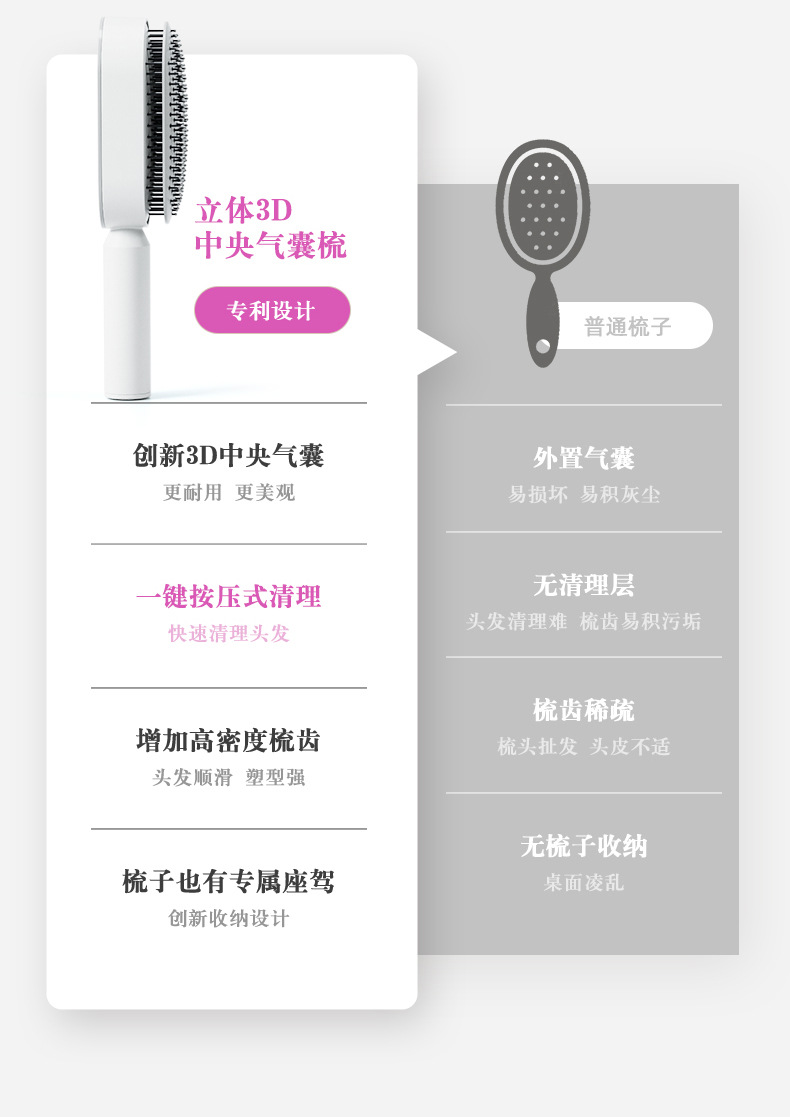 • 업그레이드된 프레스 에어백 빗 (프레싱 가능)-흰색