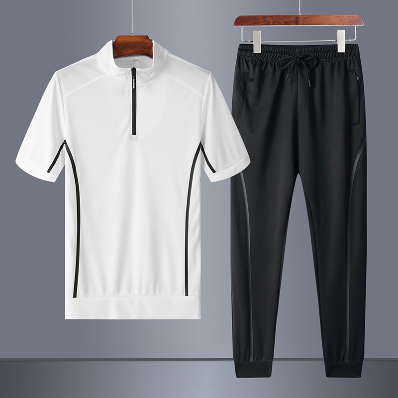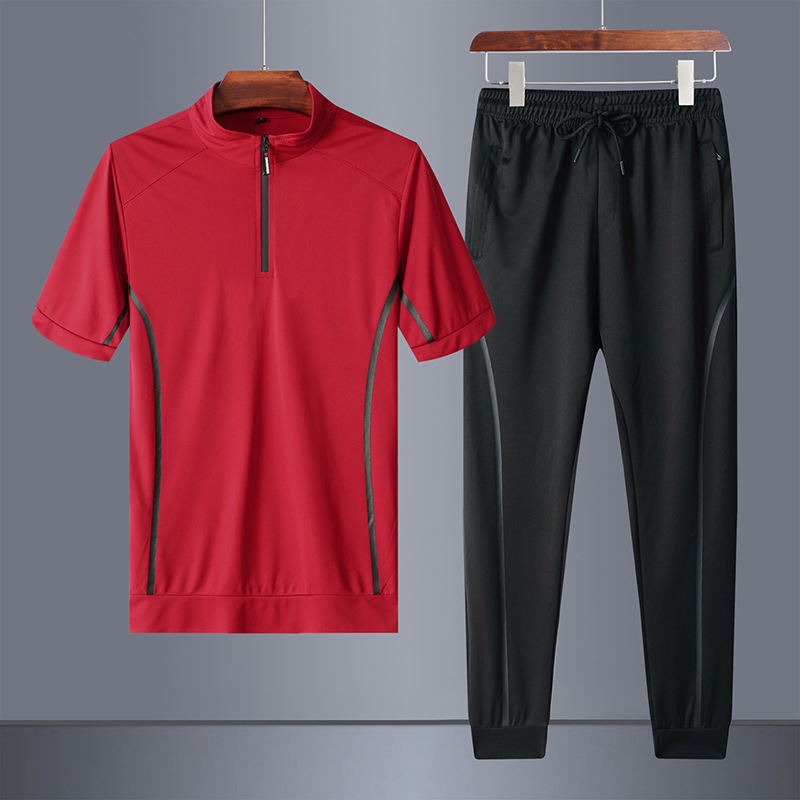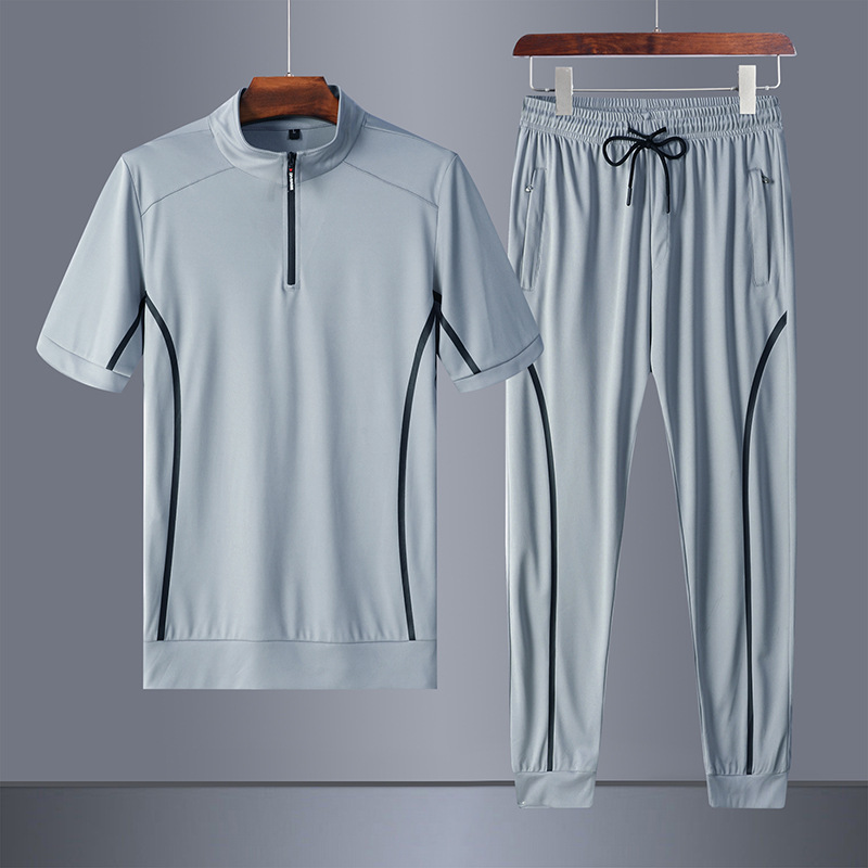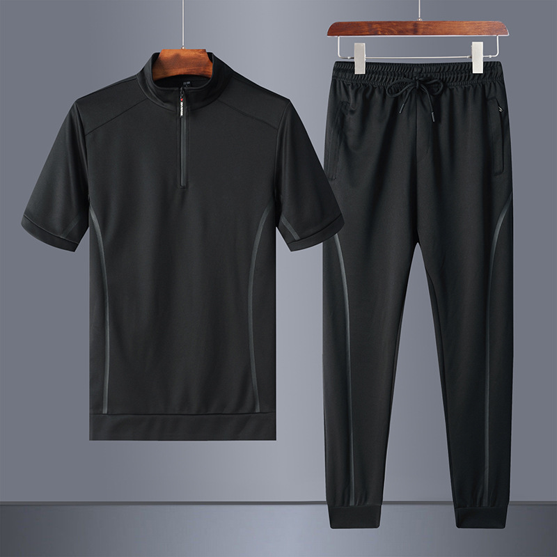 플러스 사이즈 스포츠 세트 남자의 2023 여름 반팔 바지 스포츠웨어 통기성 러닝 피트니스 세트 투피스 남성복스토어 가기