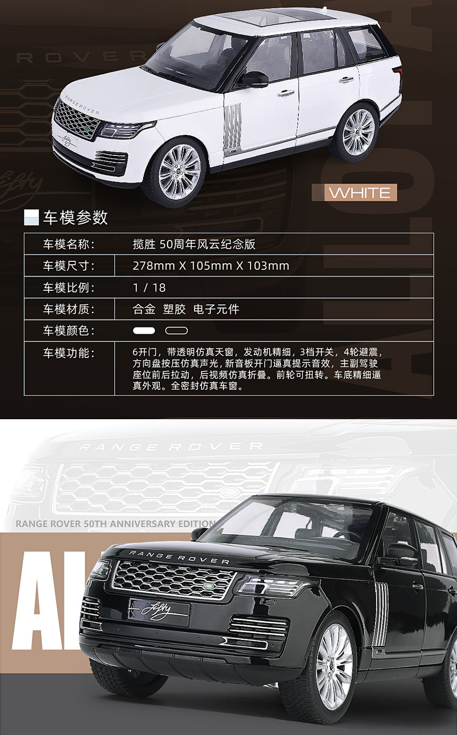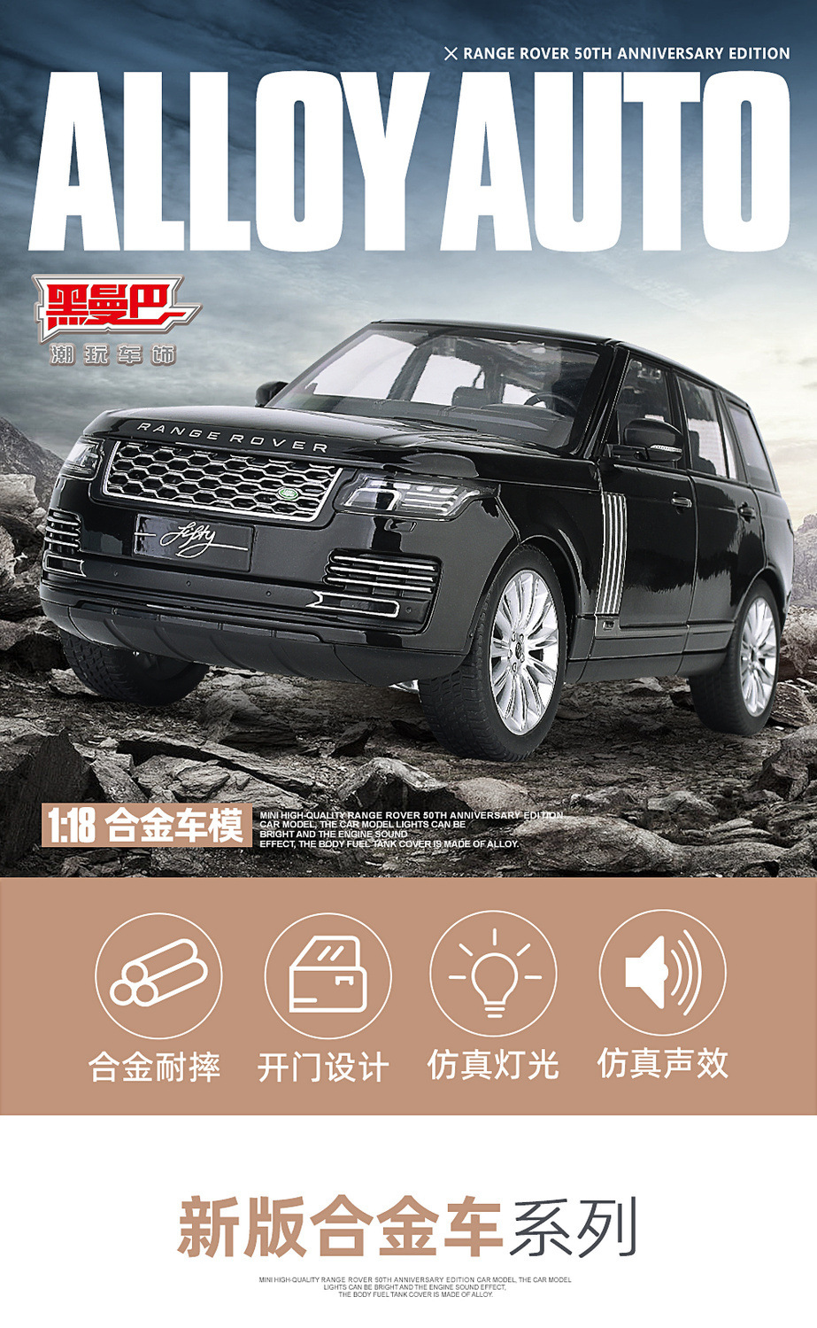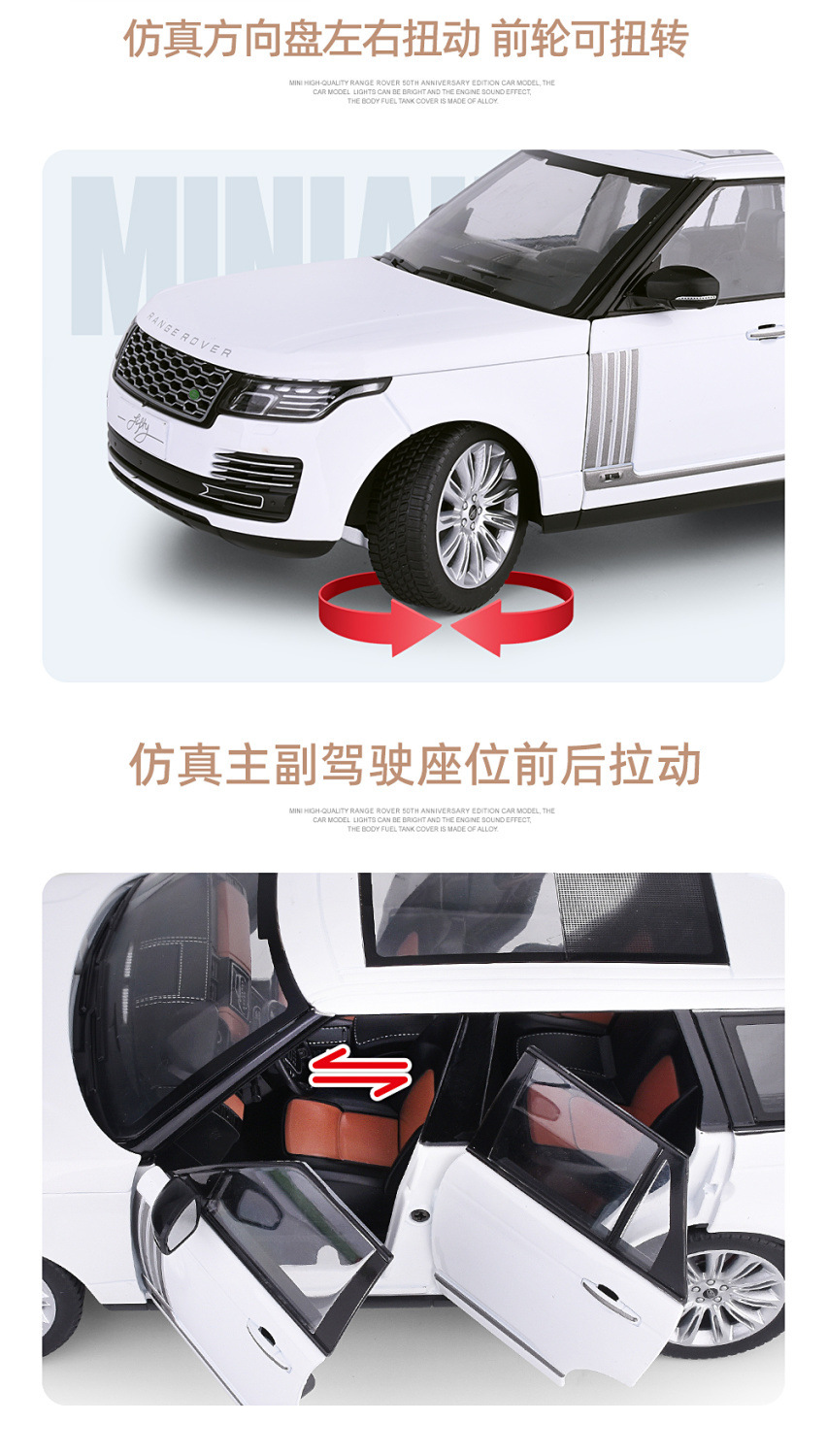 대형 1:18 랜드로버 레인지 로버 합금 자동차 모델 오프로드 차량 선물 장식품 흔들림 음성 라이브 폭발 국경을 넘어
