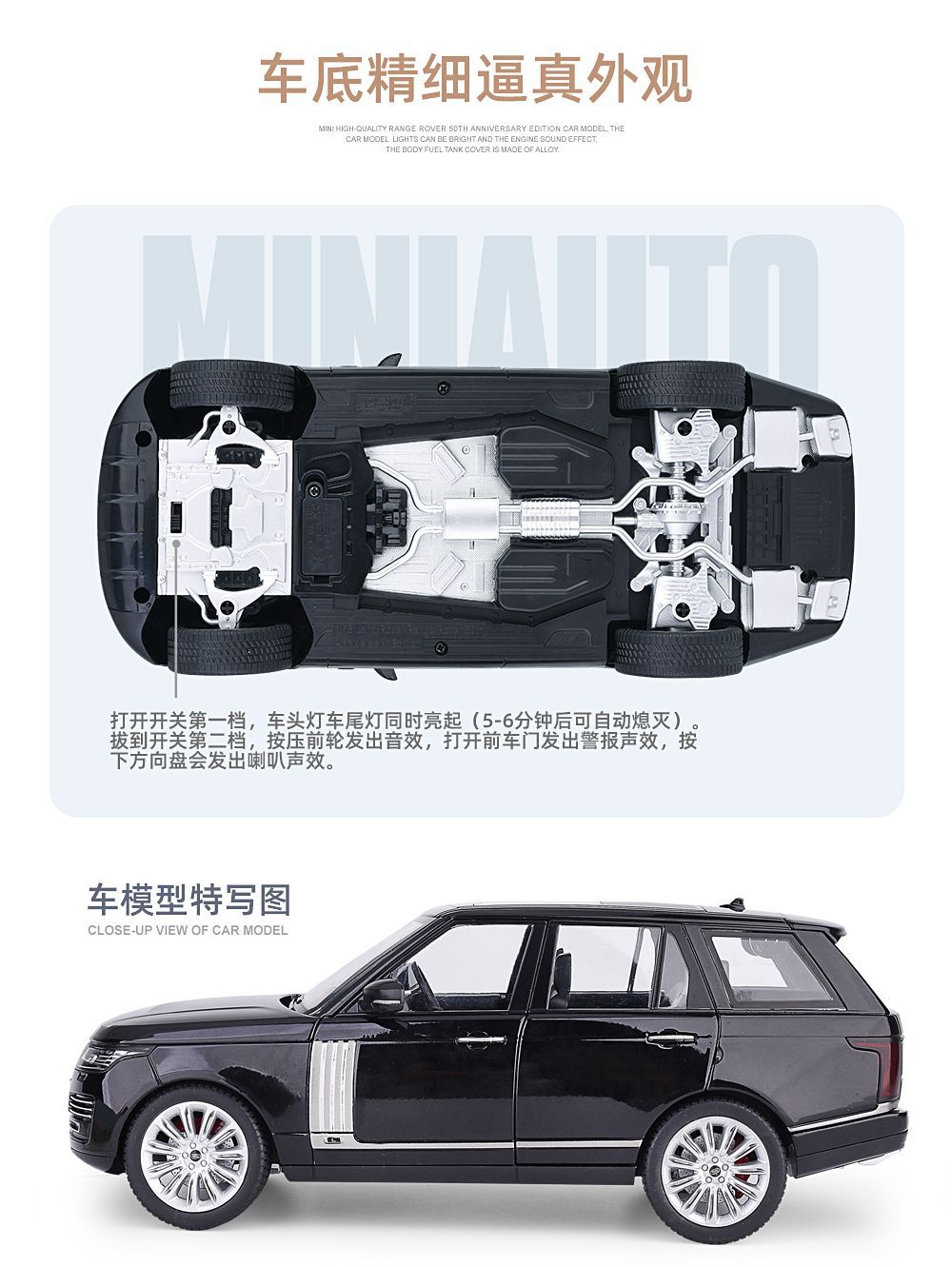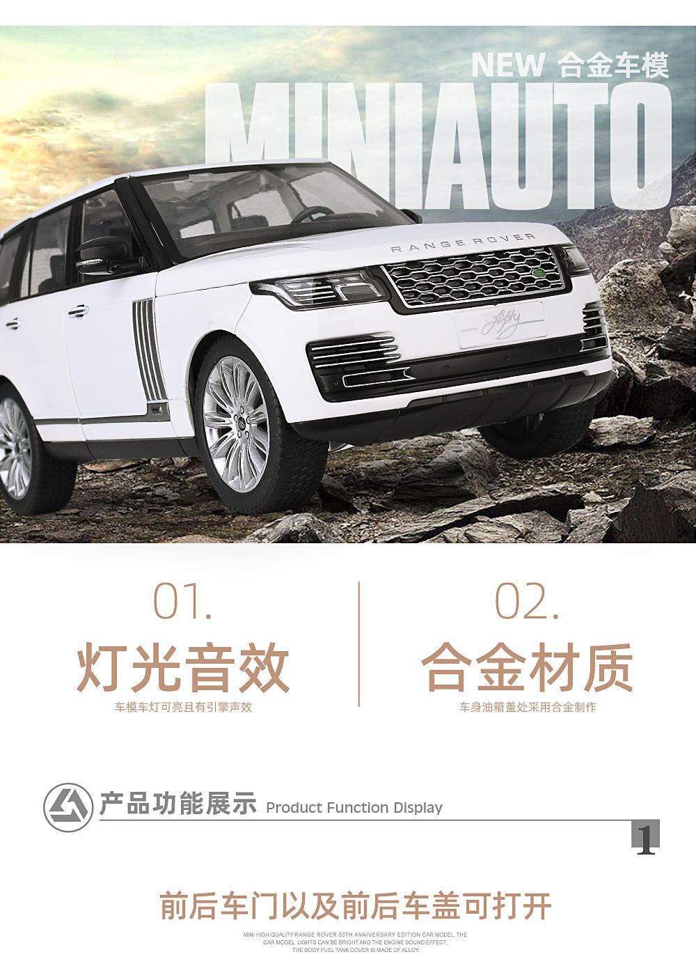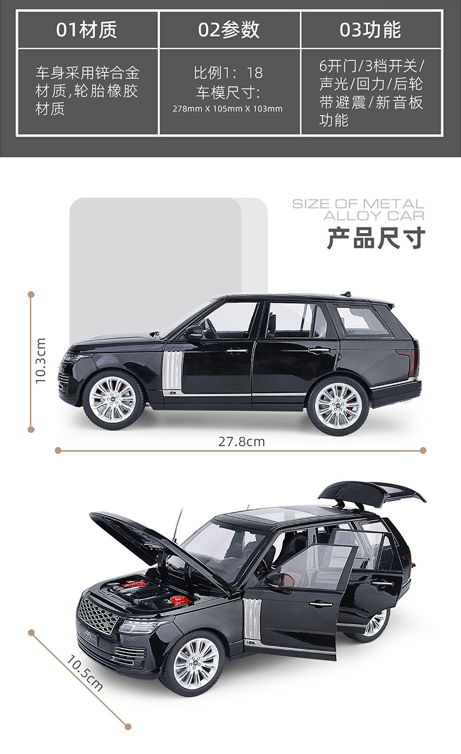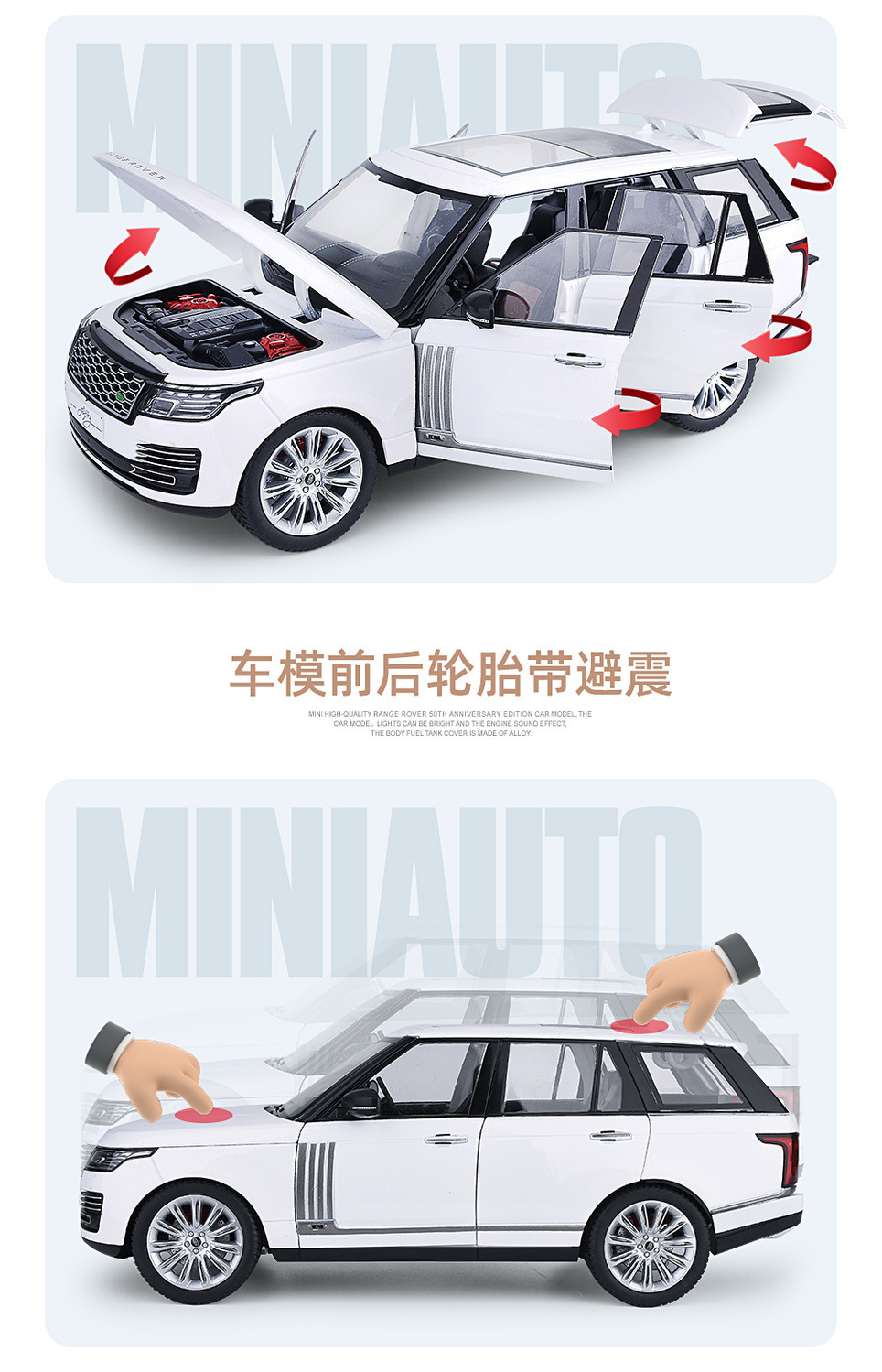 대형 1:18 랜드로버 레인지 로버 합금 자동차 모델 오프로드 차량 선물 장식품 흔들림 음성 라이브 폭발 국경을 넘어