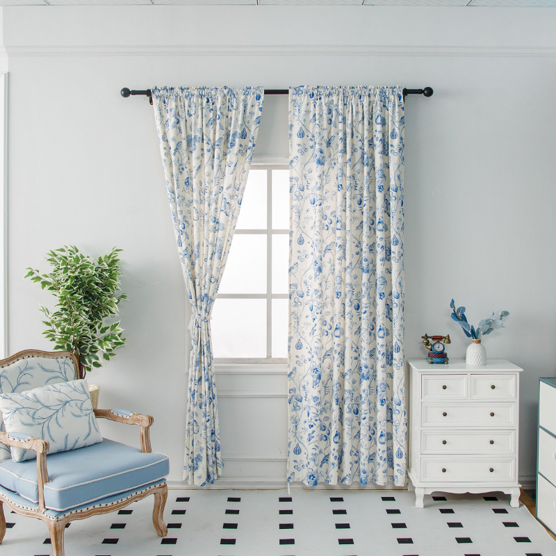 프랑스 꽃 사계절 유니버설 커튼 패브릭 컨트리 가든 신선한 커튼 꽃 새 면 린넨 거실 커튼 도매
