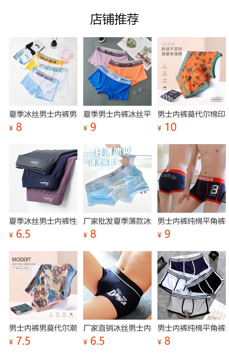 공장 직판 여름 남성 속옷 아이스 실크 사각팬티 얇고 통기성 좋고 편안한 남성 청소년 사각팬티스토어 가기