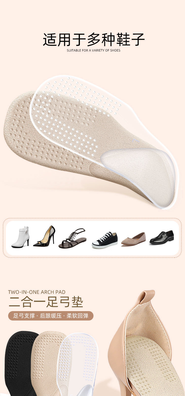 투인원 아치 힐 패드 GEL 자체 접착 보이지 않는 미끄럼 방지 입자 마사지 충격 흡수 아치 지원 정형 외과 깔창