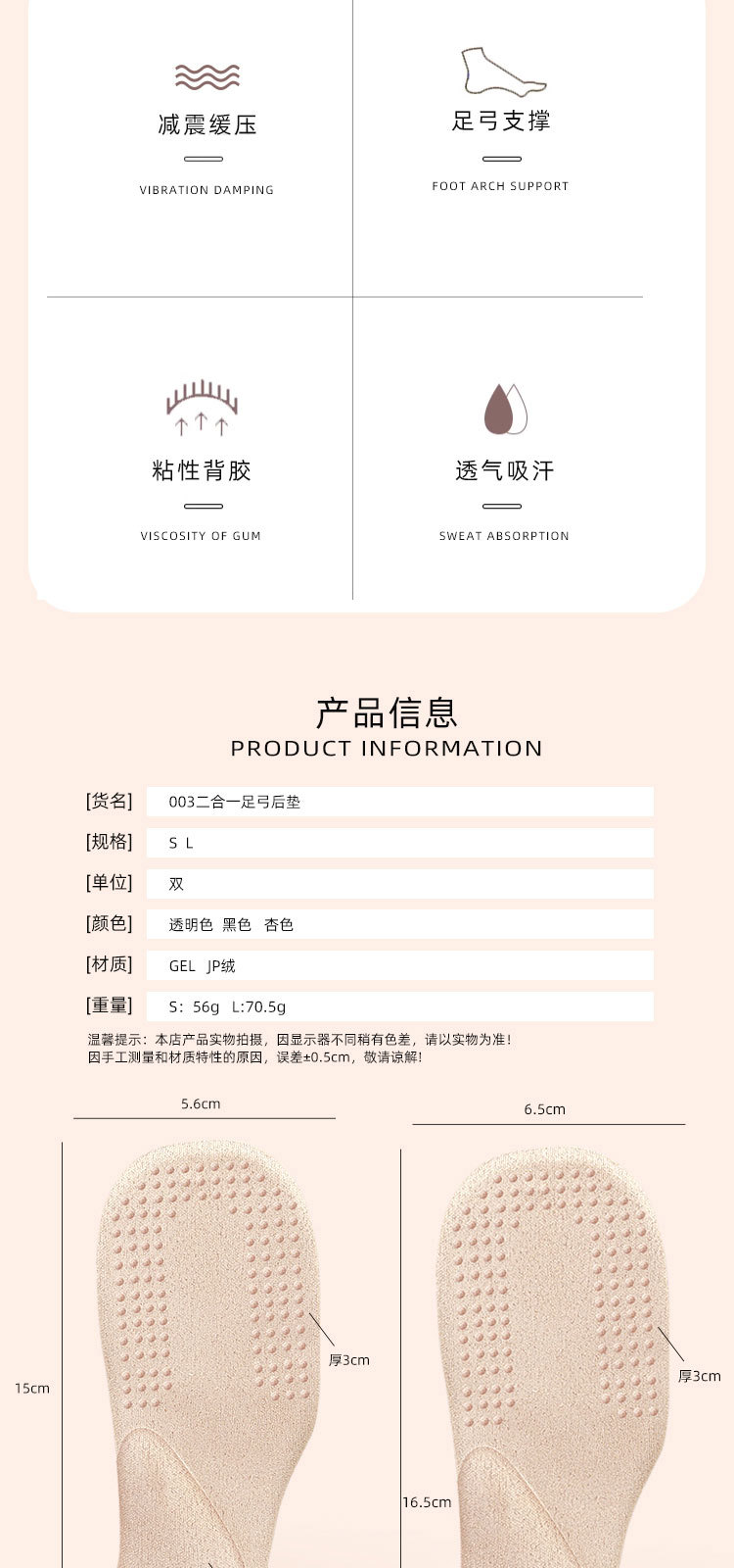 투인원 아치 힐 패드 GEL 자체 접착 보이지 않는 미끄럼 방지 입자 마사지 충격 흡수 아치 지원 정형 외과 깔창스토어 가기