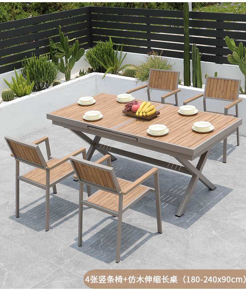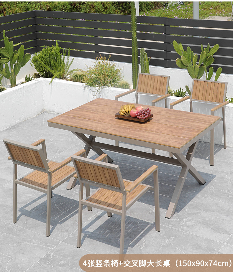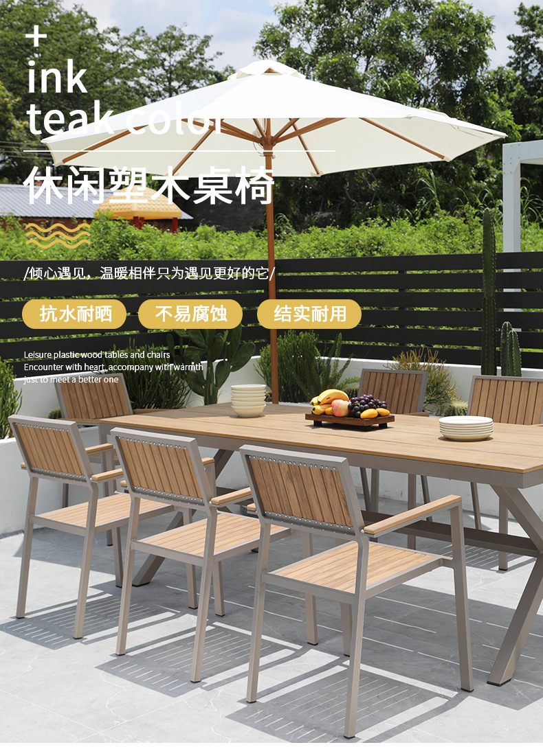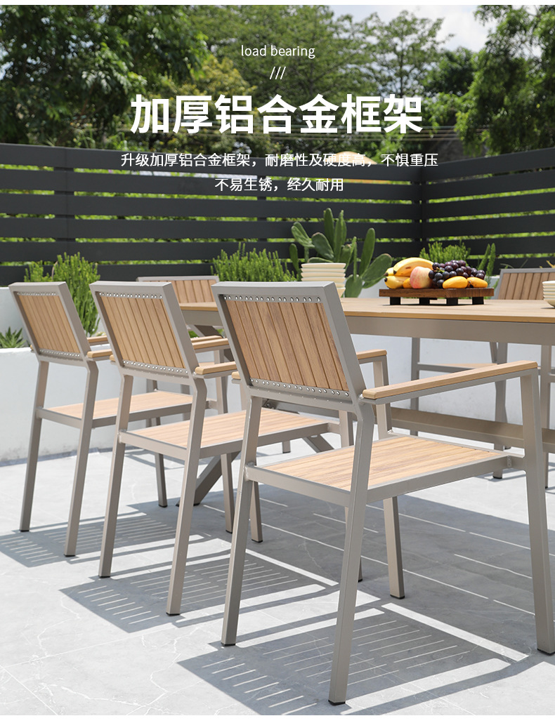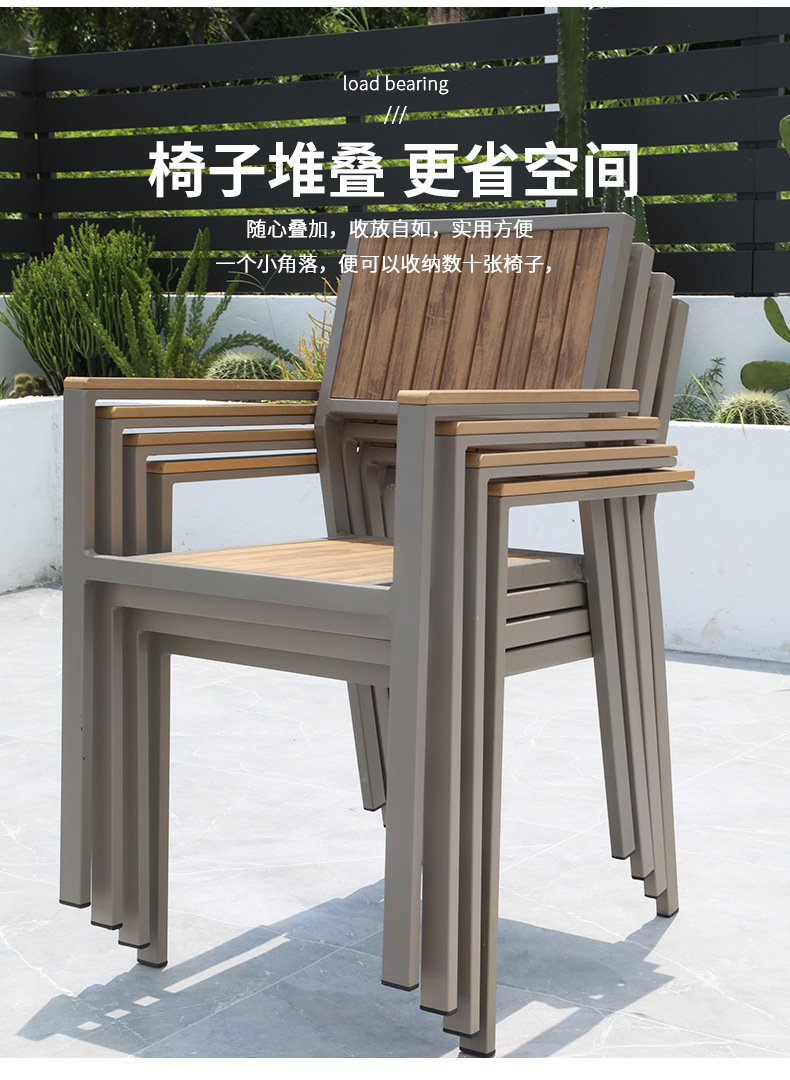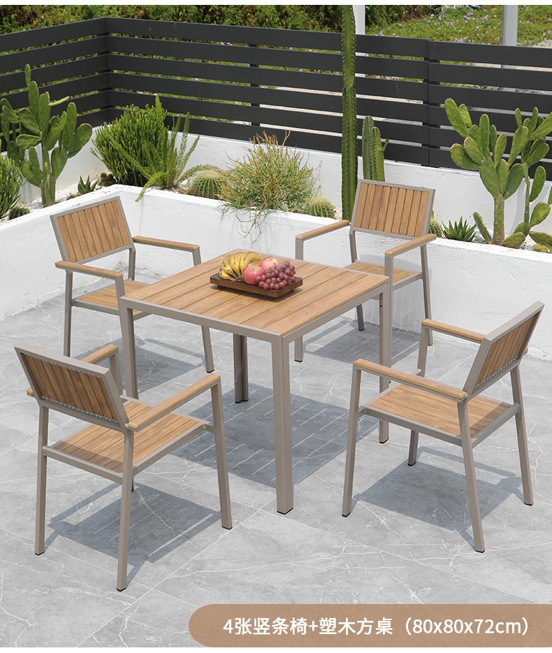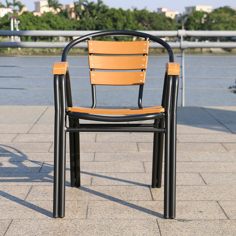 Aoqing 야외 의자 플라스틱 나무 의자 샴페인 컬러 모조 나무 의자 티크 컬러 야외 방수 식당 의자 선 스크린 테이블 및 의자 배치스토어 가기