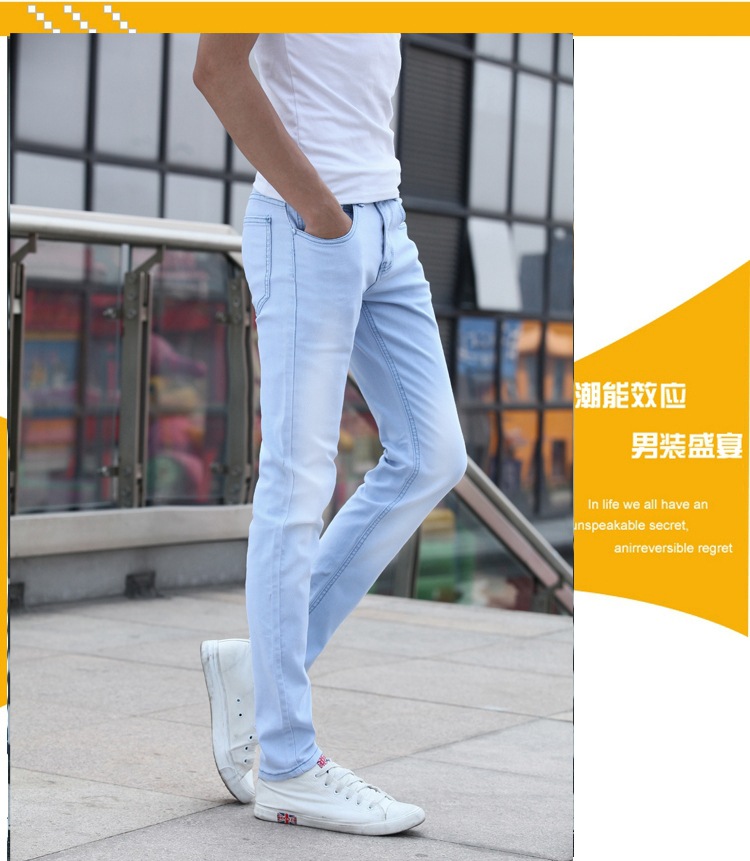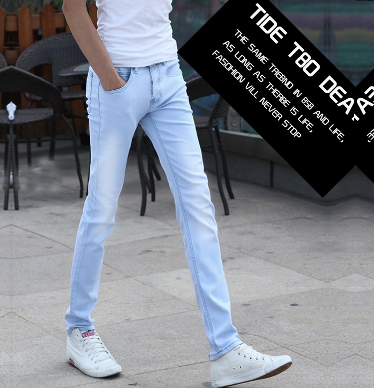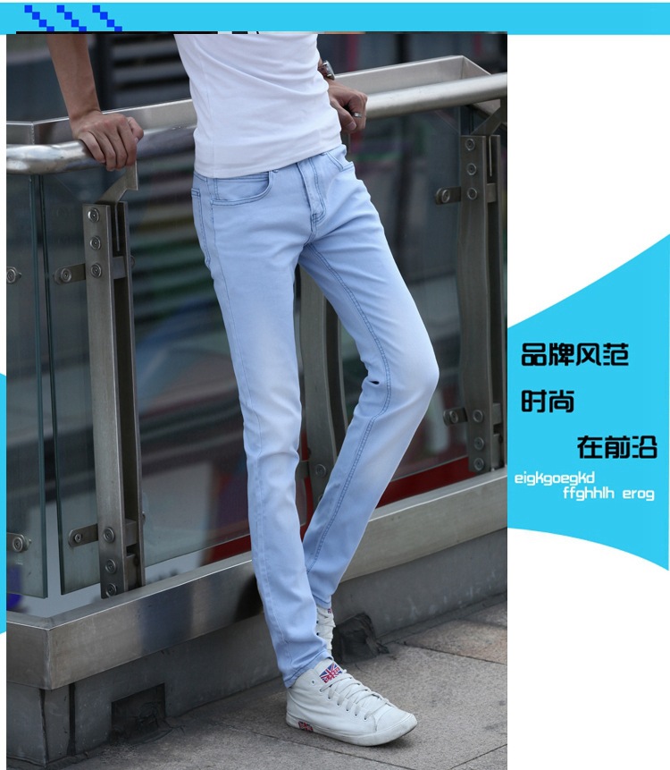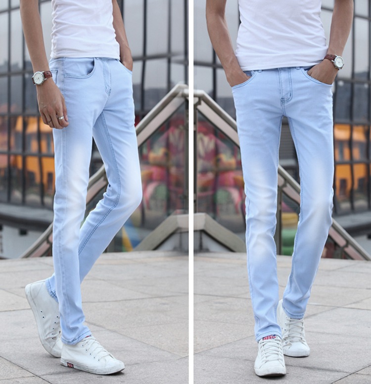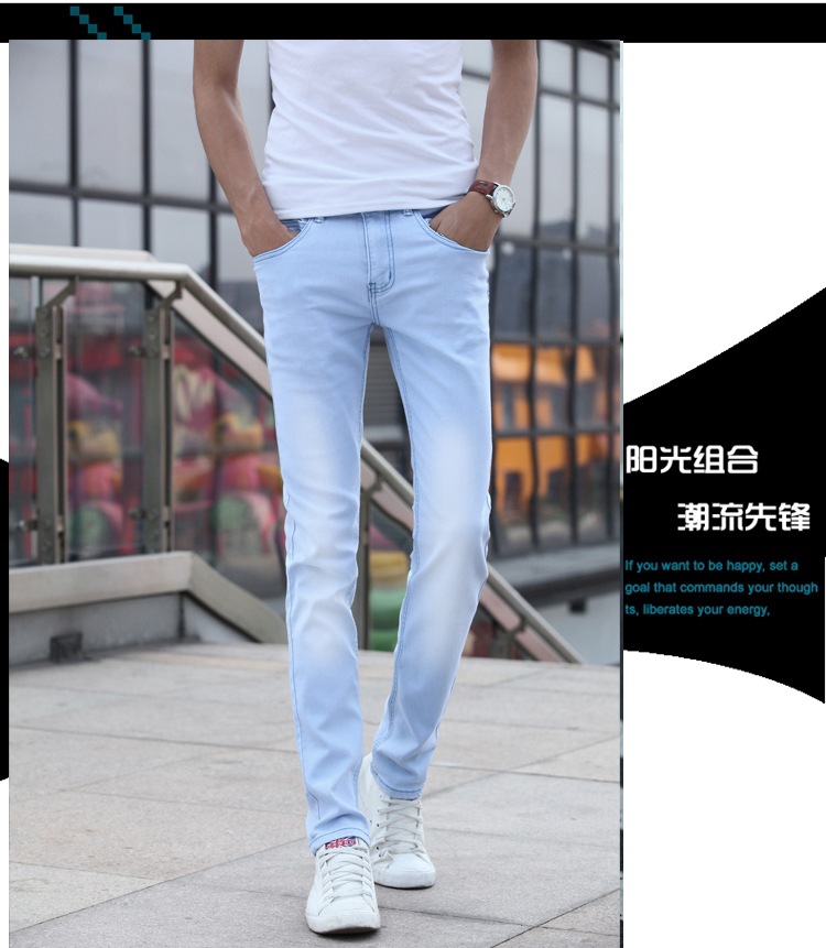 봄 새로운 한국 스타일 트렌디 남성복 남성 슬림핏 스트레치 블루 진 펜슬 팬츠 7021