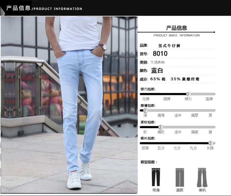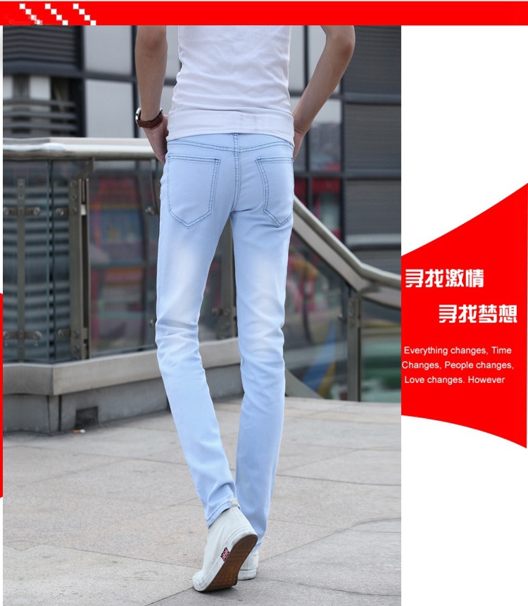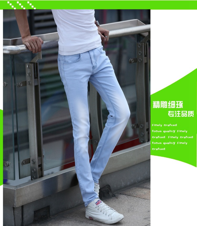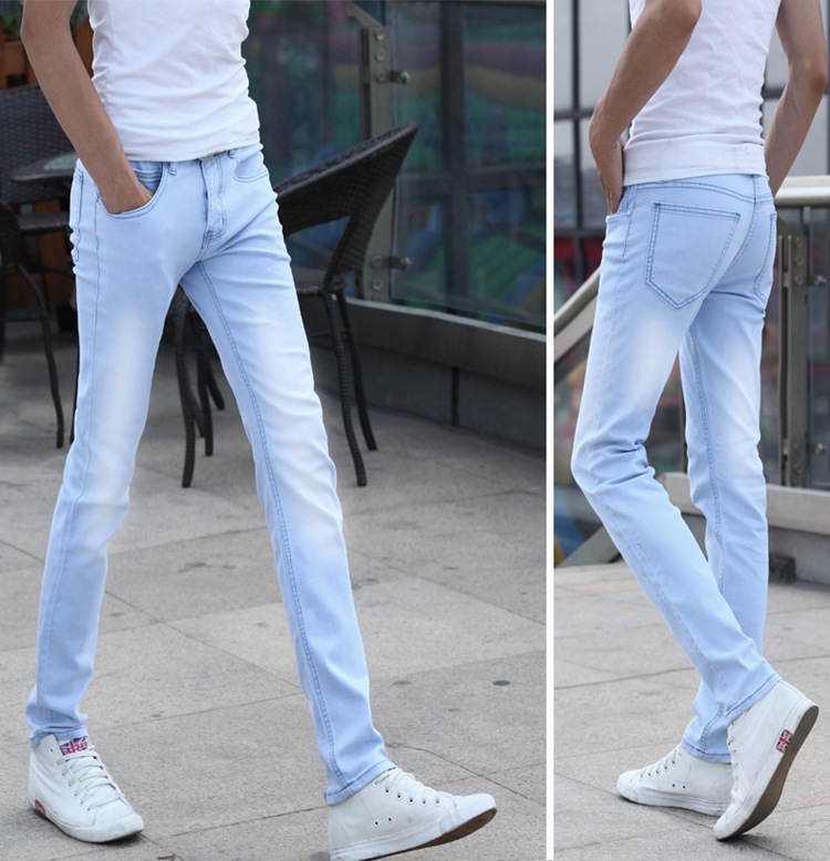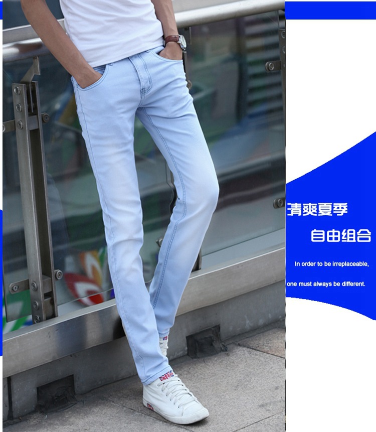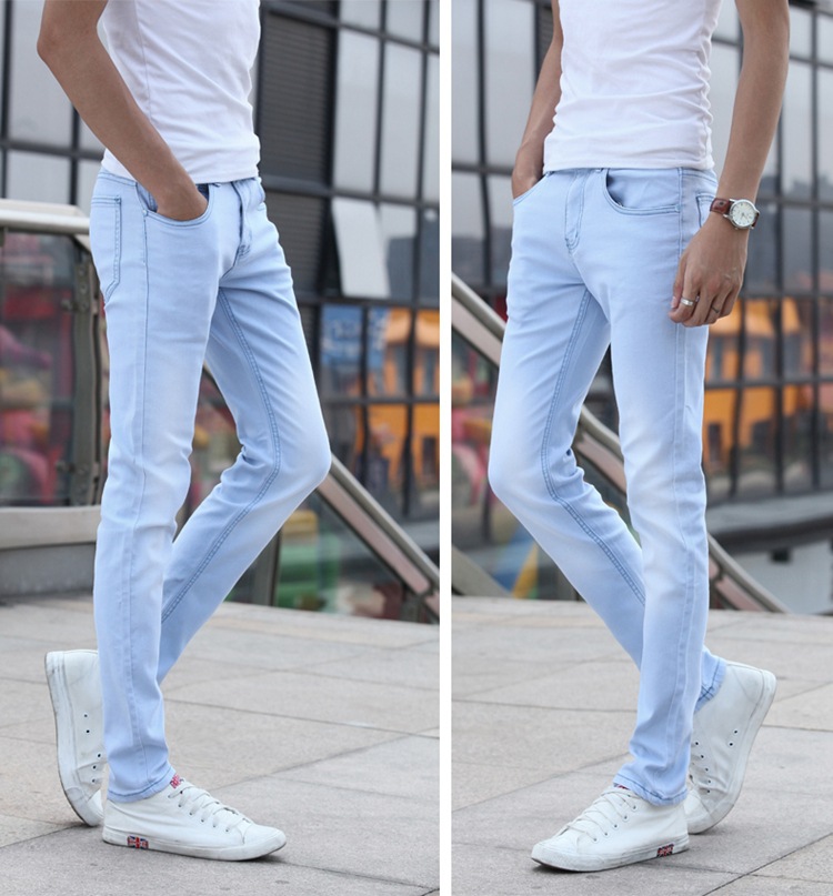 봄 새로운 한국 스타일 트렌디 남성복 남성 슬림핏 스트레치 블루 진 펜슬 팬츠 7021