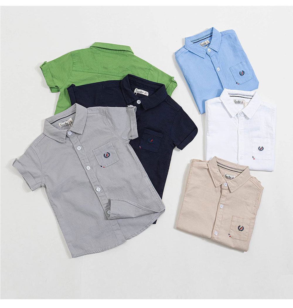 대외 무역 아동복 셔츠 제조업체 도매 아기 다목적 캐주얼 짧은 셔츠 아동면 자수 반팔 셔츠스토어 가기