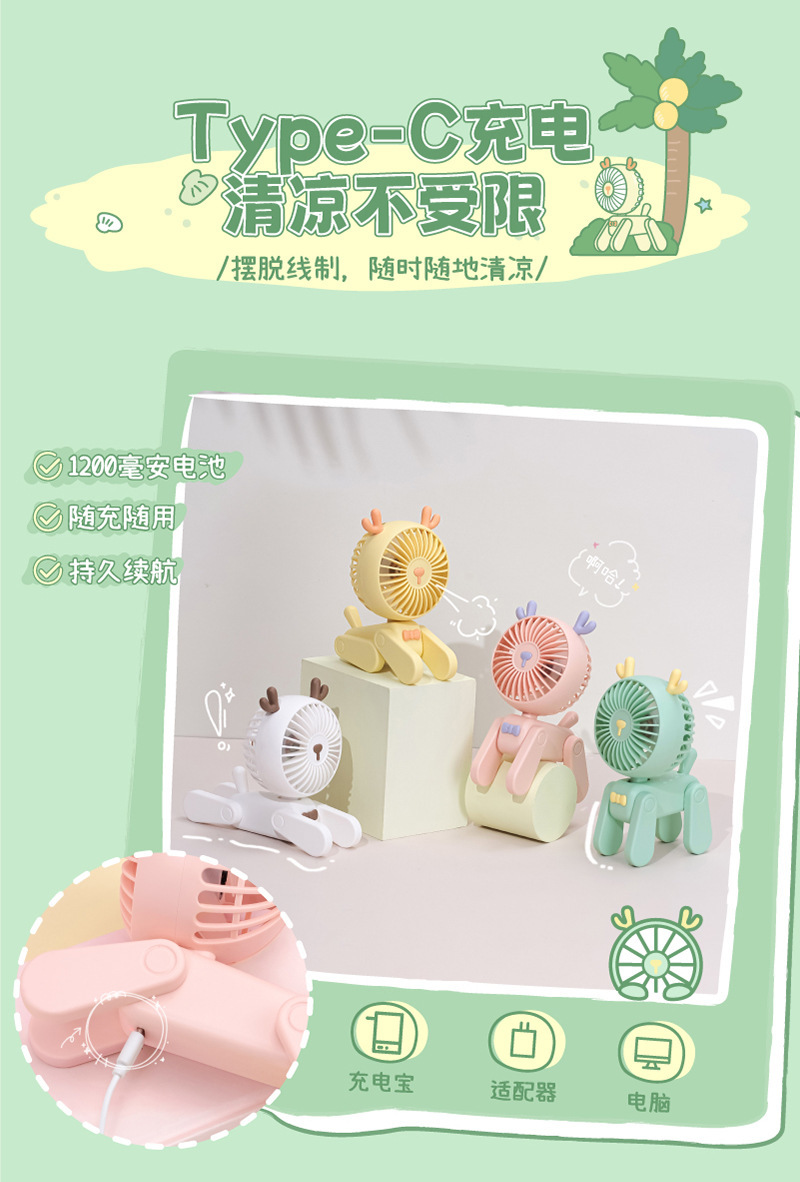 2023 귀여운 강아지 선풍기 USB 충전식 데스크탑 미니 선풍기 어린이날 창조적 인 선물