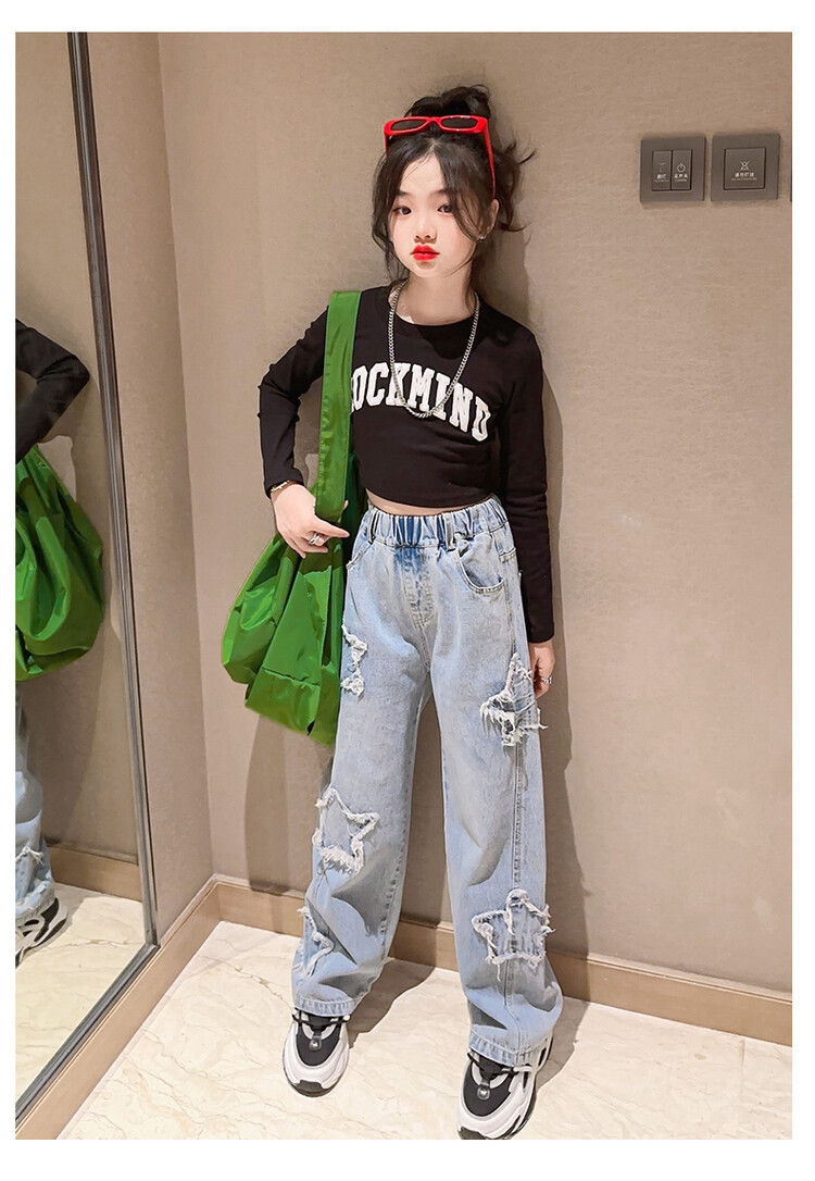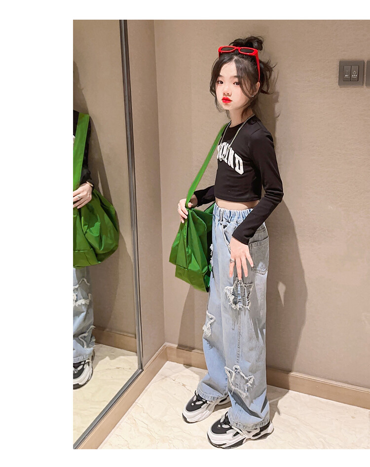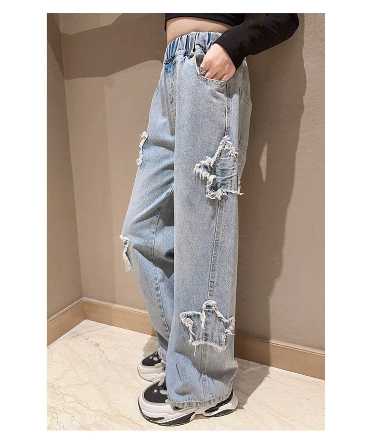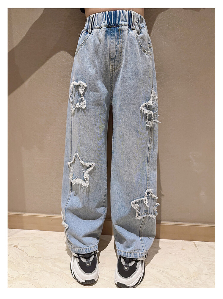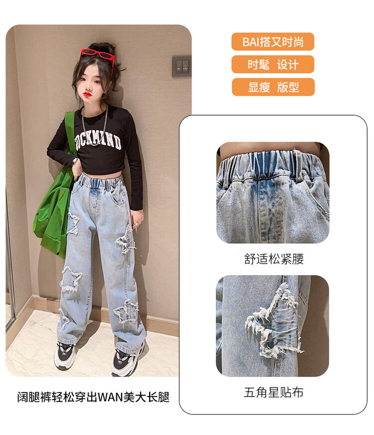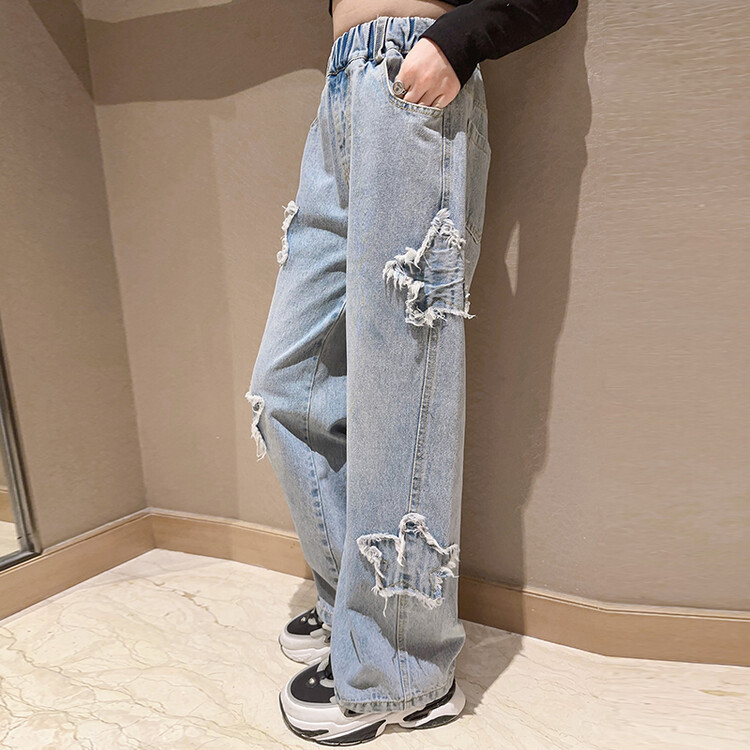 여아 와이드 팬츠 2025 봄 신상 스트레이트 캐주얼 바지 아동용 중대형 아동용 스플라이스 루즈 청바지스토어 가기
