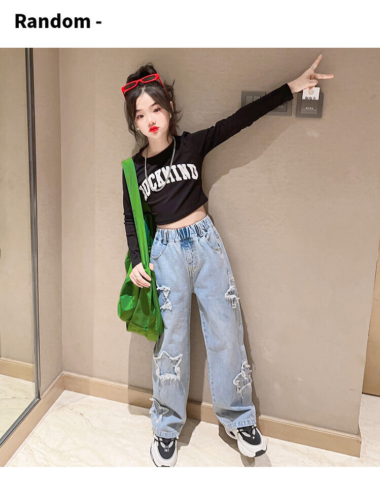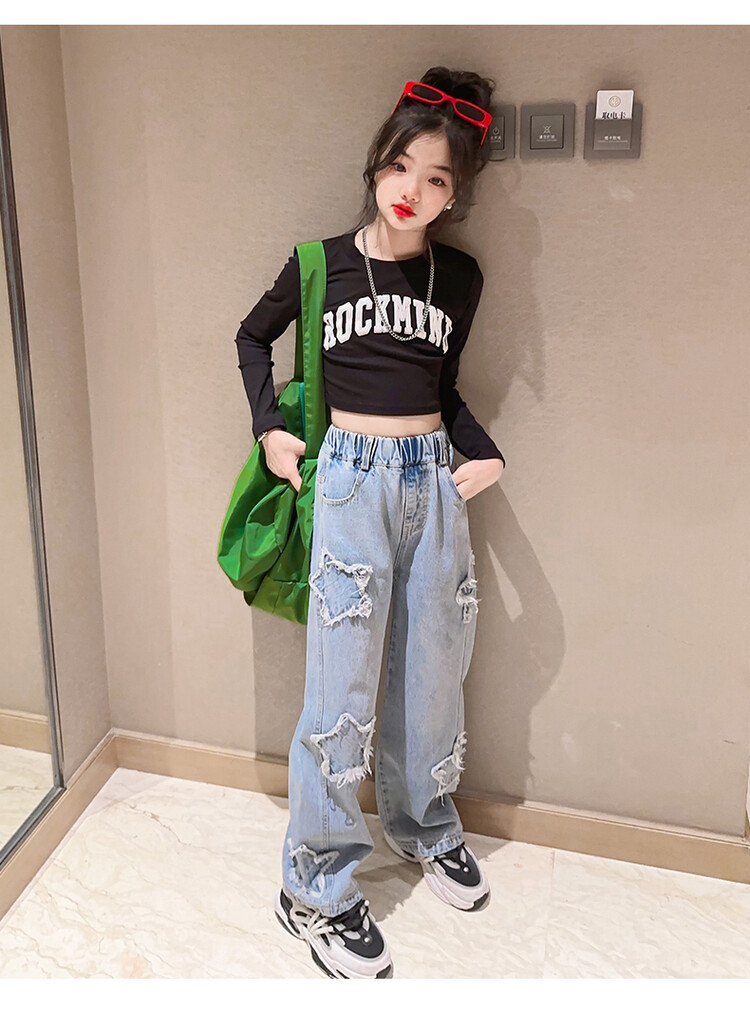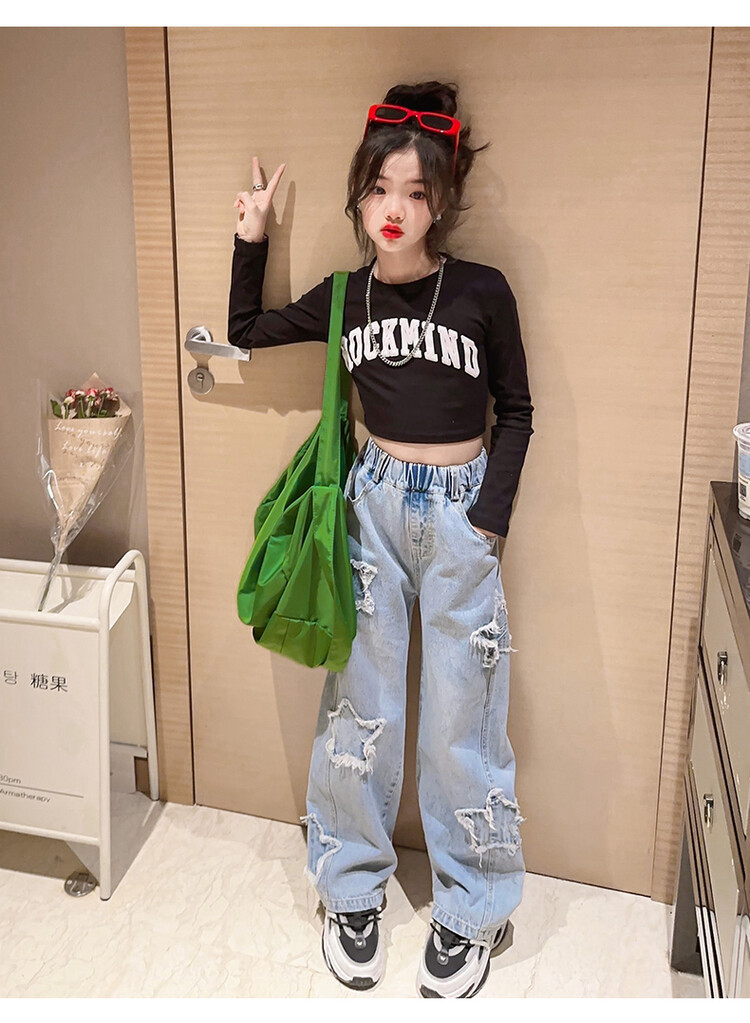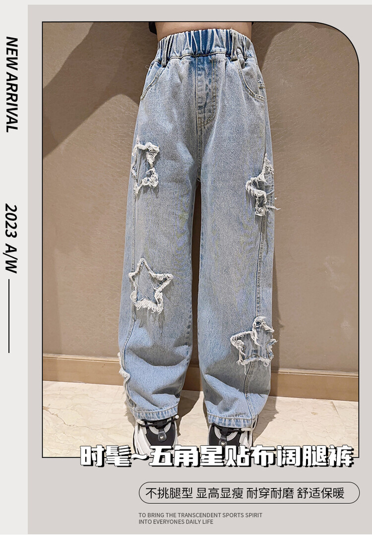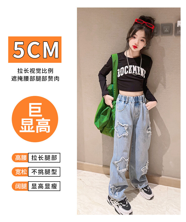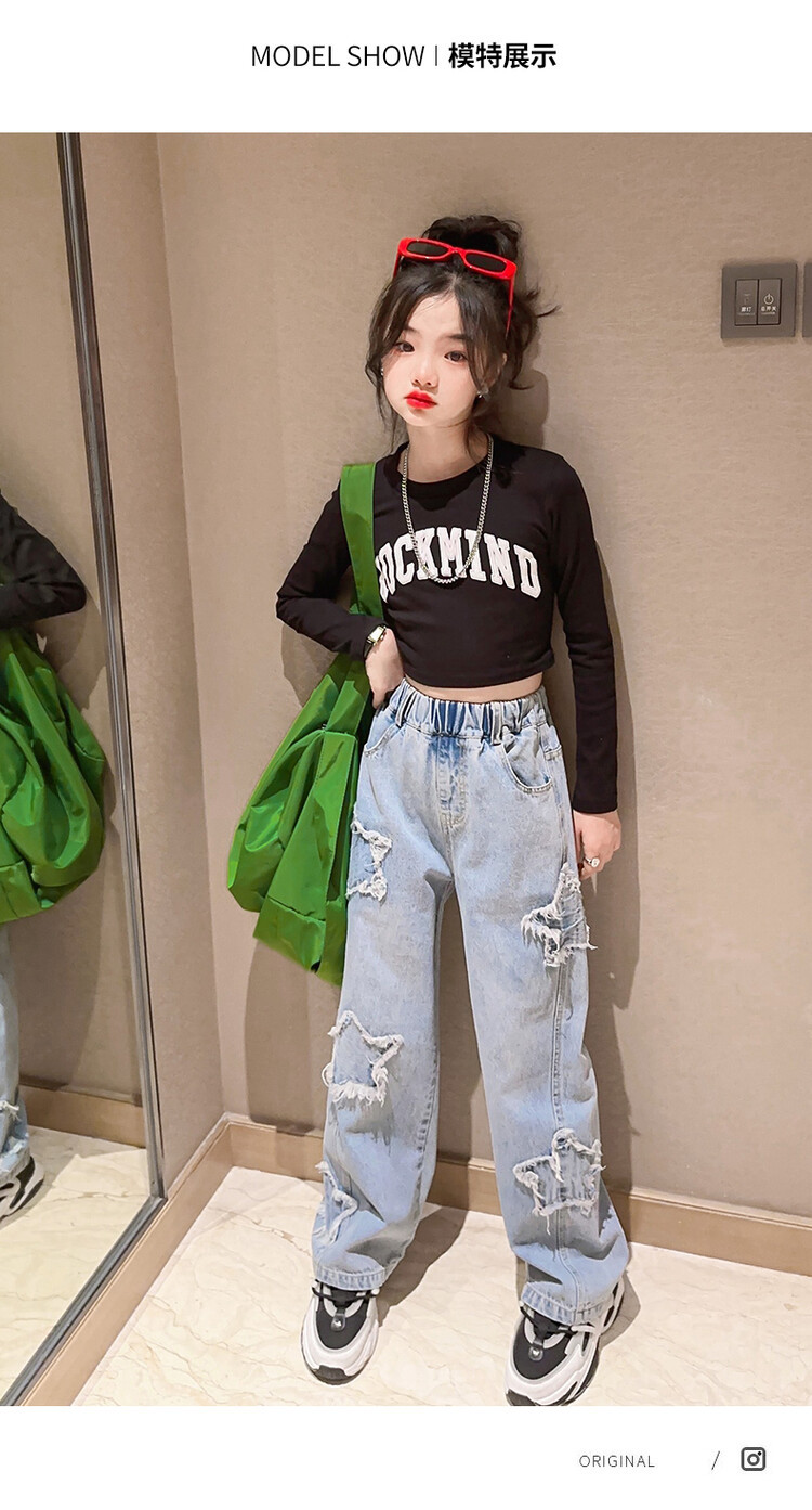 여아 와이드 팬츠 2025 봄 신상 스트레이트 캐주얼 바지 아동용 중대형 아동용 스플라이스 루즈 청바지스토어 가기