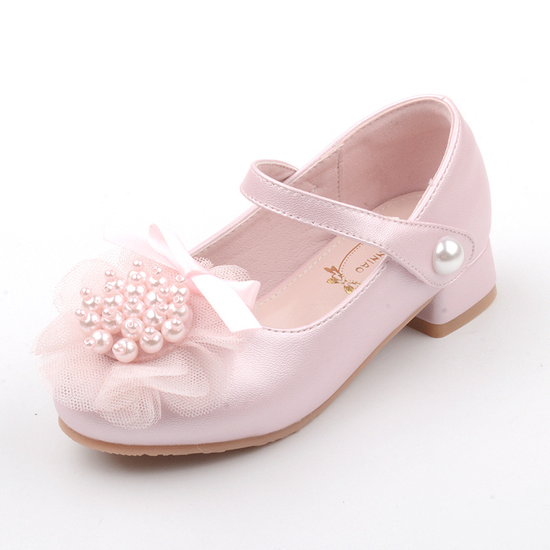 공주 신발 여아용 흰색 가죽 신발 새로운 봄 가을 싱글 슈즈 나비 레이스 아동용 하이힐 중대형 어린이 공주 신발