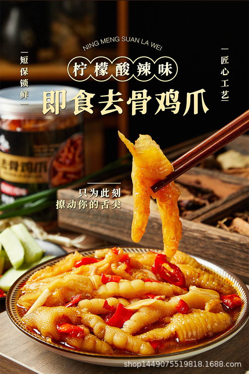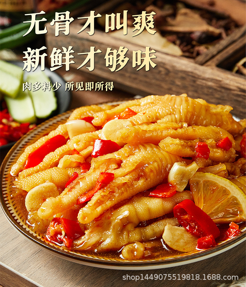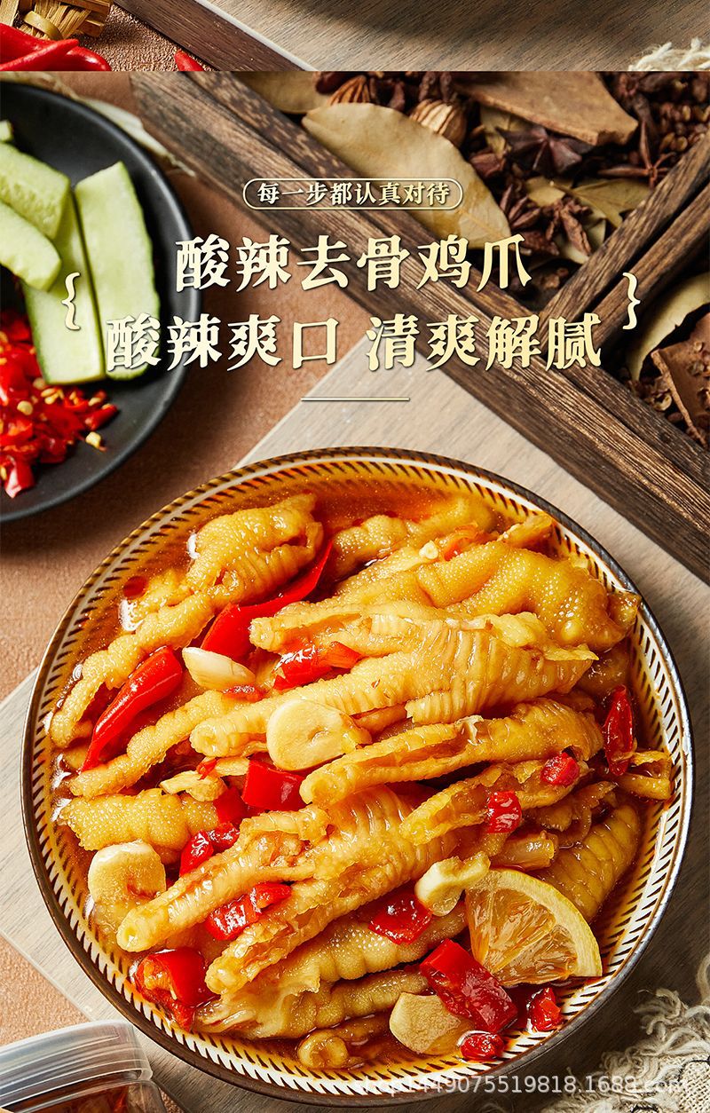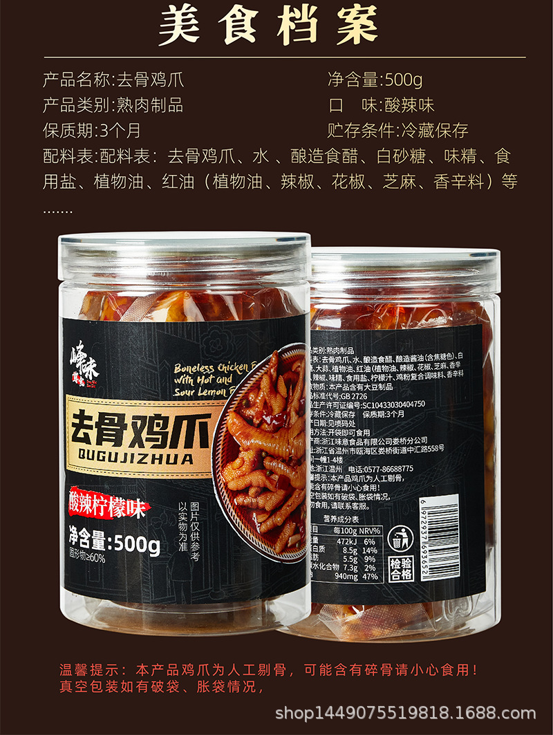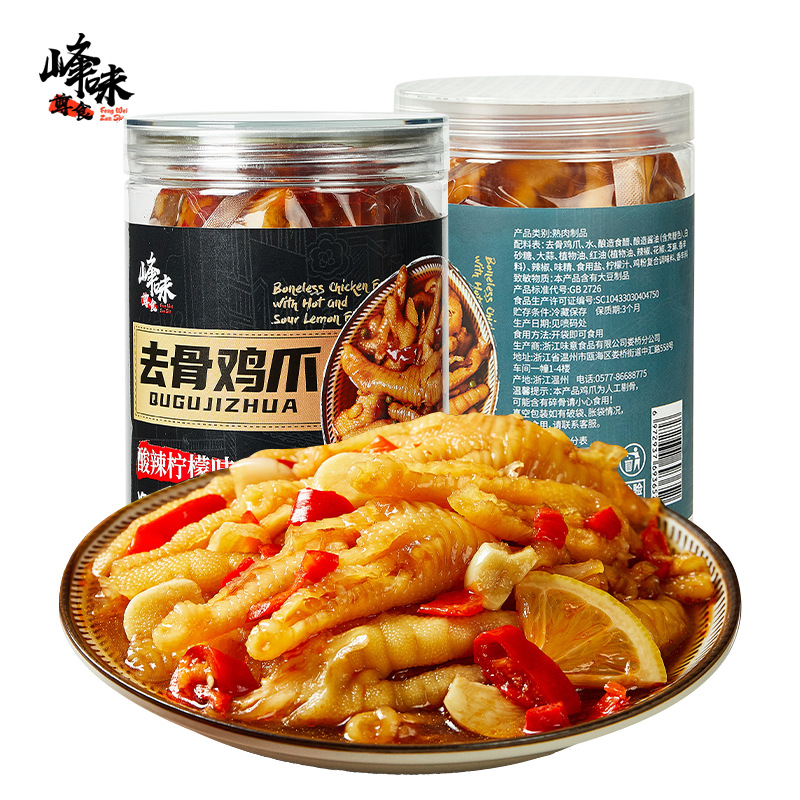 Fengweizun 음식 통조림 500g 큰 부분 구연산 매운 뼈없는 닭 발 간식 그물 빨간 간식스토어 가기