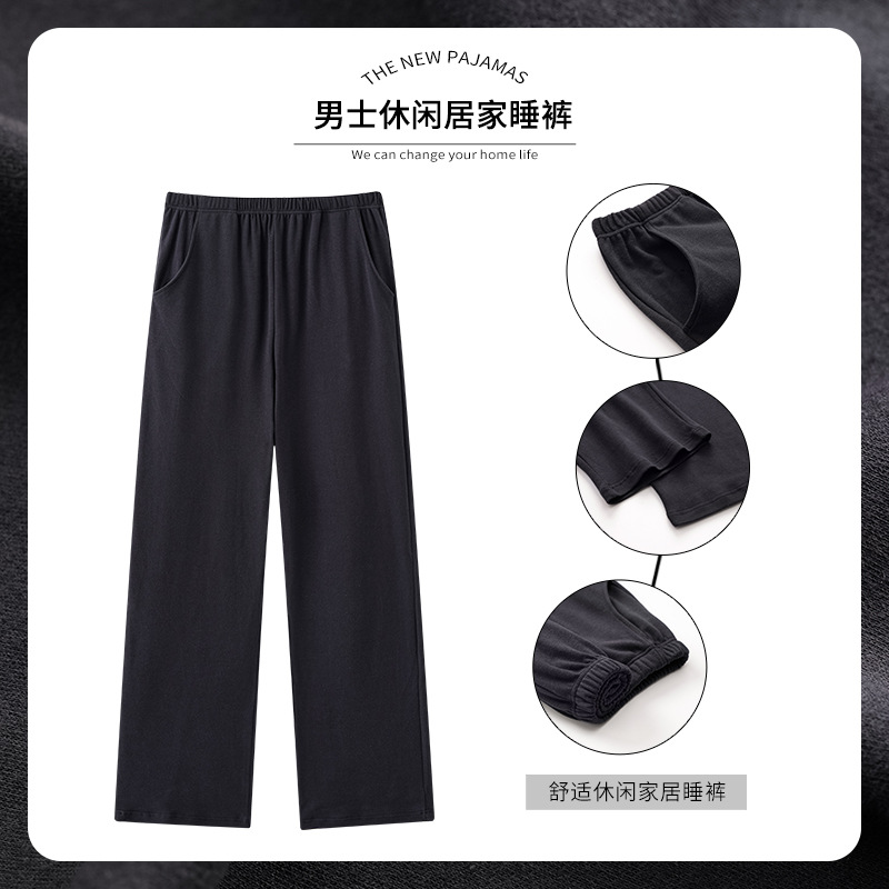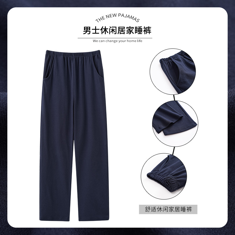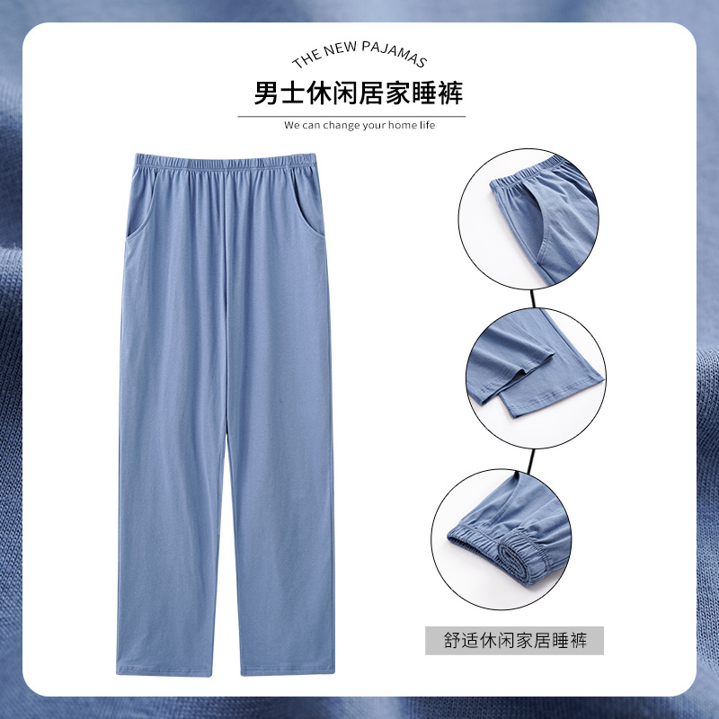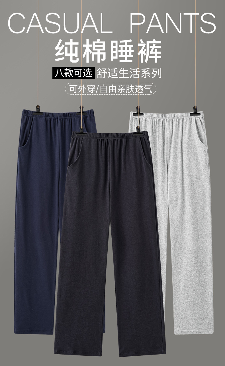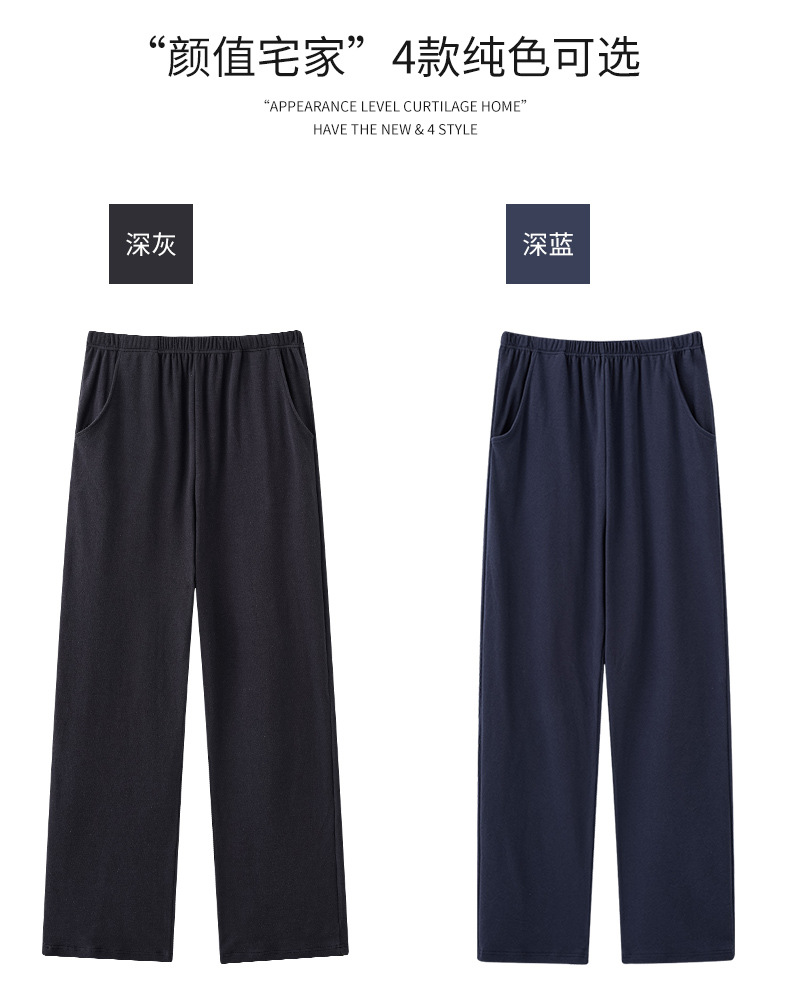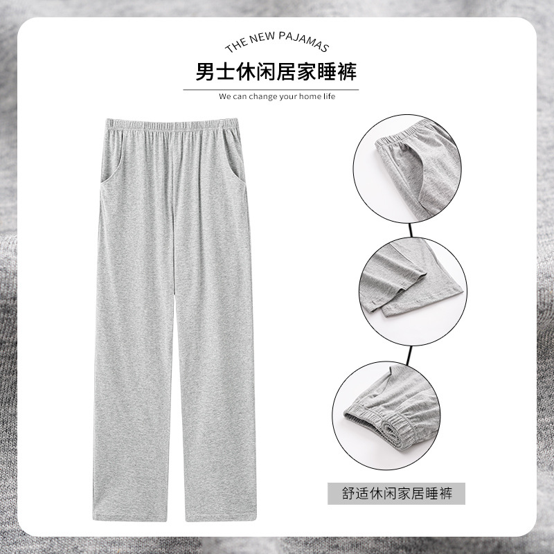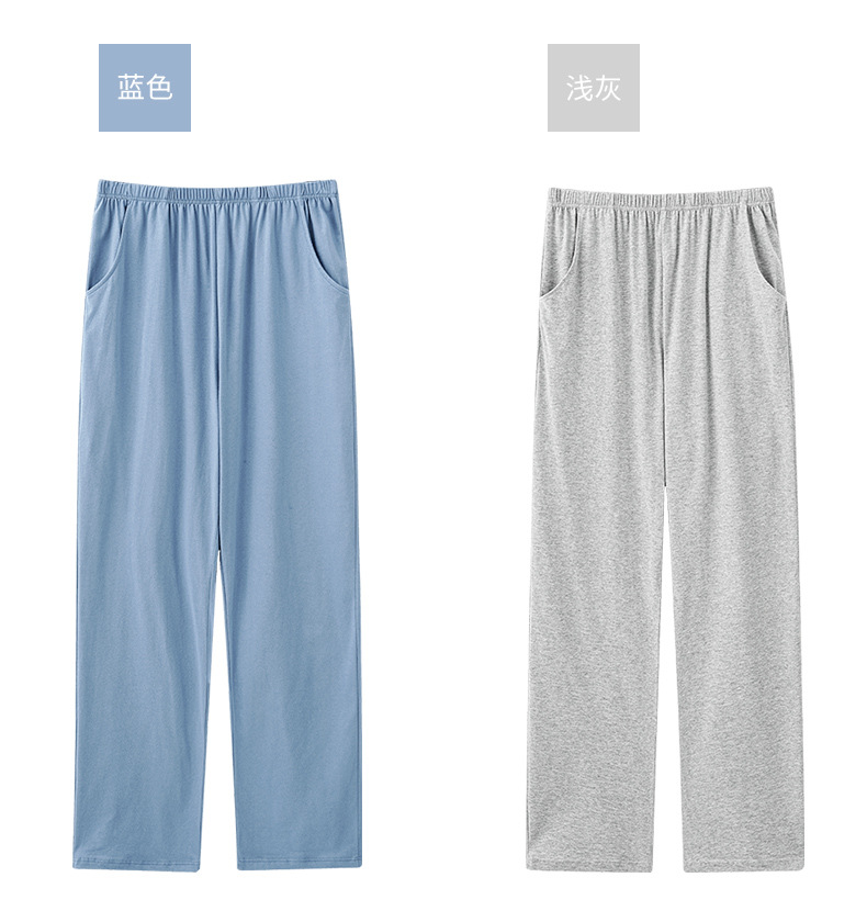 청소년 여름 새로운 얇은 바지 심플 편안한 남성용 순면 잠옷 바지 가벼운 스포츠 스타일 단색 싱글 바지 가정 의류스토어 가기