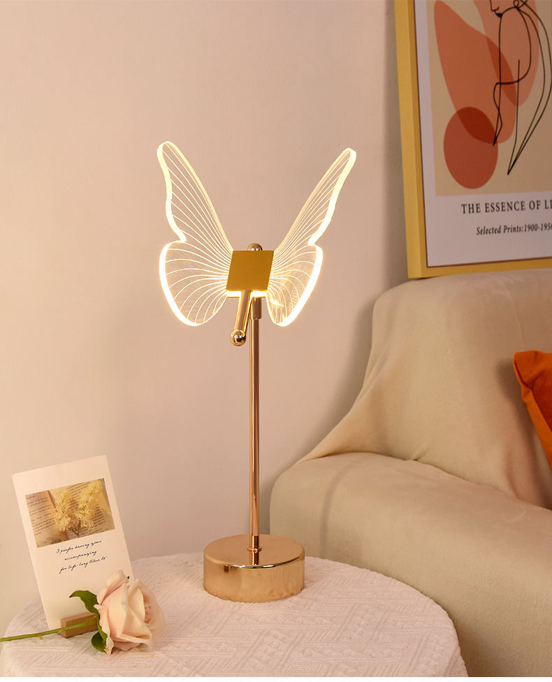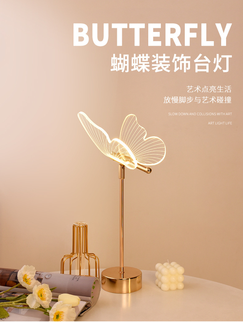 가벼운 럭셔리 간단한 아크릴 크리 에이 티브 장식 분위기 빛 나비 테이블 램프 디 밍이 가능한 소녀 침실 머리맡 야간 조명