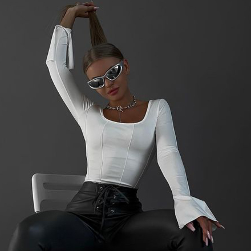 유럽 및 미국 여성 의류 아마존 2025 신상품 스퀘어넥 풀오버 슬림핏 긴팔 니트 탑 티셔츠 여성용 숏 스타일