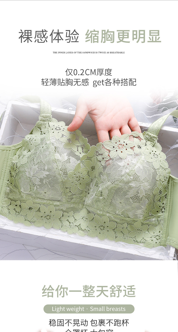 TikTok 폭발성 풀 컵 초박형 플러스 사이즈 속옷 여성의 얇은 대형 가슴 작은 처짐 방지 모임 브라스토어 가기